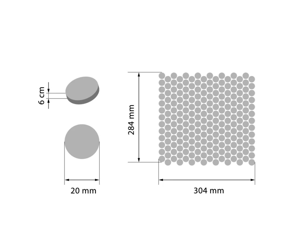 gatunek: Gat.1 Mozaika Dots Black – nowoczesne mozaiki ceramiczne na ścianę Elegancki wzór w czarne kropki Mozaika Dots Black to ceramika ścienna o połyskującym wykończeniu, która wyróżnia się nowoczesnym wzorem okrągłych „kropeķ”. Czarny kolor dodaje wnętrzu charakteru i pozwala stworzyć eleganckie, kontrastowe akcenty w łazience, kuchni lub salonie. Wysoka jakość i trwałość Mozaika wykonana jest z ceramiki najwyższej jakości, gatunku I, o grubości 6 mm. Odporna na wilgoć i łatwa w utrzymaniu czystości, sprawdza się w pomieszczeniach narażonych na wodę i zabrudzenia. Wygodny montaż dzięki siatce montażowej Każda mozaika Dots Black jest umieszczona na siatce o wymiarach 284 × 304 mm, co ułatwia precyzyjny montaż nawet przy samodzielnym układaniu. Rozmiar pojedynczej kostki to 20 × 20 mm, co pozwala na tworzenie detali i geometrycznych kompozycji. Idealna do nowoczesnych i minimalistycznych wnętrz Mozaika Dots Black świetnie komponuje się z innymi wzorami mozaik ceramicznych, tworząc unikalne aranżacje ścienne. Doskonała do nowoczesnych, loftowych i minimalistycznych wnętrz, gdzie liczy się stylowy detal i kontrastowe elementy dekoracyjne. Parametry produktu Materiał: ceramika Kolor: czarny Rozmiar siatki: 284 × 304 mm Rozmiar kostki: 20 × 20 mm Grubość: 6 mm Gatunek: I Wykończenie: połysk