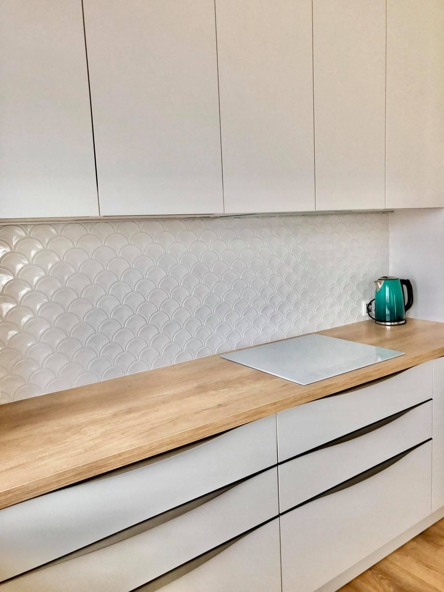 Produkt sprzedawany na plastry. Mozaika Łuska Biała – subtelna elegancja w kształcie rybiej łuski Wyjątkowy design i kształt Mozaika Łuska Biała wyróżnia się formą stylizowanej rybiej łuski („łuska”), która w białym odcieniu i połyskliwym wykończeniu wnosi do wnętrza efekt lekkości i nowoczesnego wyrazu. Nietypowy kształt stanowi atrakcyjną alternatywę dla klasycznych płytek kwadratowych. Parametry techniczne produktu R