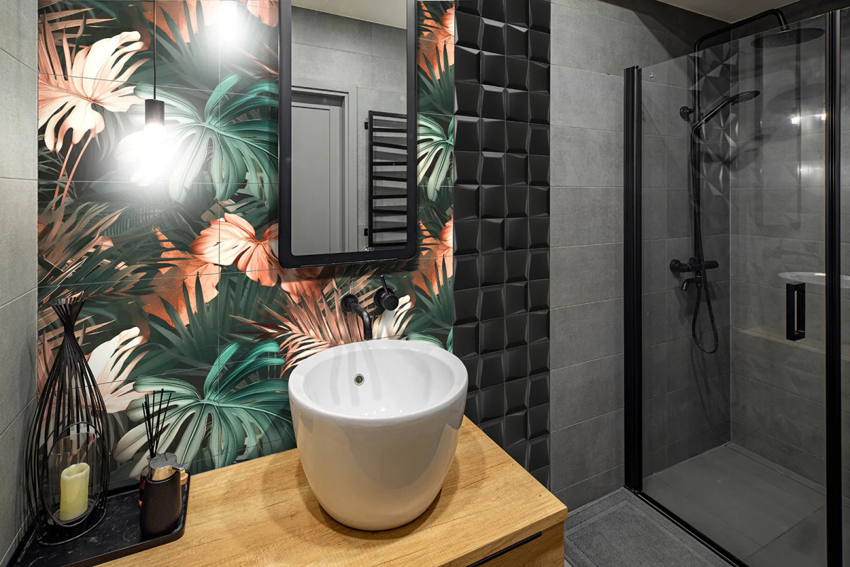 Obraz wielkoformatowy Obraz składa się z 8 elementów Wymiar pojedynczej płytki 30×60 cm Wymiar obrazu w całości 120×120 cm Płytki ceramiczne rektyfikowane Obraz ceramiczny Zanzibar 120×120 cm Egzotyczna zieleń i tropikalny klimat — dekoracyjna ściana z charakterem Obraz Zanzibar 120×120 to dekoracyjny panel ceramiczny, który po ułożeniu z 8 płytek 30×60 cm tworzy efektowną całość o wymiarach 120×120 cm. Motyw tropikalnych liści i intensywnych kolorów wprowadza do wnętrza energię natury, egzotykę i świeżość — idealny sposób na odmianę łazienki, salonu, kuchni czy holu. Najważniejsze cechy produktu • Format 120×120 cm — gotowa dekoracja ścienna Panel składa się z 8 elementów (płytek 30×60 cm), które po ułożeniu tworzą pełny, dekoracyjny obraz ścienny, gotowy do natychmiastowego montażu. • Ceramika prasowana, grubość 8 mm — trwałość i odporność Płytki wykonane metodą prasowania zapewniają stabilność, wytrzymałość i długowieczność dekoracji. • Odporność na wilgoć — możliwość montażu w łazience czy kuchni Obraz można stosować również w strefach mokrych, np. w kabinie prysznicowej lub przy umywalce. • Trwały nadruk ceramiczny — odporność mechaniczna, chemiczna i termiczna Grafika jest nanoszona tuszami ceramicznymi i wypalana w wysokiej temperaturze, co gwarantuje odporność na ścieranie, detergenty, zarysowania i zmiany temperatury. • Odporność ogniowa — bezpieczeństwo przy źródłach ciepła Płytki są niepalne, co pozwala na montaż przy kominkach lub urządzeniach kuchennych. • Atrakcyjna kolorystyka i egzotyczny motyw — tropikalny styl wnętrza Intensywne odcienie zieleni liści w połączeniu z ciepłym tłem tworzą harmonijną, tropikalną kompozycję, która ociepla i ożywia przestrzeń. Zastosowanie — gdzie Zanzibar 120×120 sprawdzi się najlepiej Łazienka / kabina prysznicowa — dekoracyjna ściana w strefie mokrej. Salon / jadalnia / kuchnia — ściana akcentowa przyciągająca wzrok i odświeżająca wystrój. Hol / przedpokój / korytarz — efektowny akcent przy wejściu, nadający wnętrzu styl i charakter. Przestrzenie komercyjne / biura / lokale usługowe — dekoracyjna ściana tworząca klimat i przyciągająca uwagę. Dlaczego warto wybrać Zanzibar 120×120 Obraz Zanzibar 120×120 łączy estetykę tropikalnego muralu z praktycznością ceramiki — trwałością, odpornością na wilgoć i ogień oraz łatwym montażem. To doskonały wybór dla osób, które chcą wprowadzić do wnętrza świeżość, egzotykę i oryginalny styl, nie rezygnując z funkcjonalności.