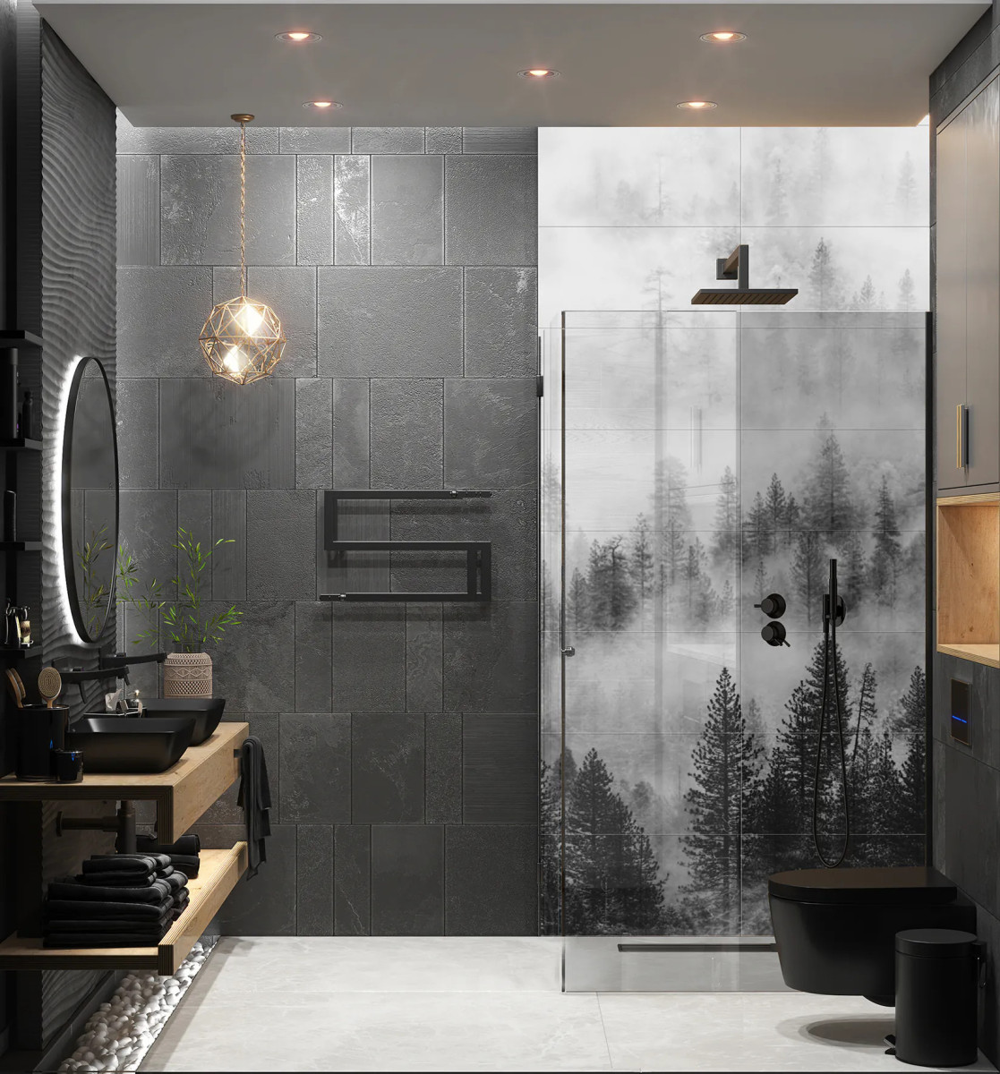 Ceramik Studio Obraz Wielkoformatowy płytka Ceramiczny Las we mgle czarno -biały 240×120 dostawa GRATIS od 500 zł kupon rabatowy