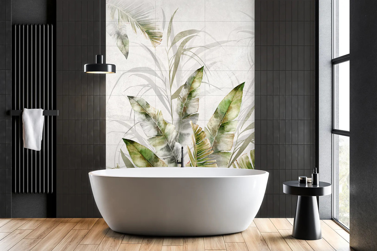 Naturalne i trwałe kolory uzyskane dzięki nowoczesnej technologii. Do nadruku używamy ploter Durst Pictocer HD (Durst Digital printing)- druk najwyższej jakości. Produkt Polski z wykorzystaniem włoskich i hiszpańskich materiałów. Obraz wielkoformatowy Amazonia Beige Large 270×180 cm Dekoracja ścienna z tropikalnym charakterem Amazonia Beige Large 270×180 to wyjątkowa kompozycja ceramiczna, która po ułożeniu tworzy spójną dekorację ściany o dużej powierzchni. Subtelna grafika liści w ciepłych odcieniach beżu, szarości i zieleni wprowadza do wnętrza naturalny, elegancki i przytulny klimat. Idealna do salonów, sypialni, łazienek, kuchni oraz przestrzeni komercyjnych, gdzie liczy się efekt wizualny i trwałość materiału. Najważniejsze cechy produktu • Duży format – 270×180 cm Produkt składa się z 27 płytek 30×60 cm, które po ułożeniu tworzą jednolitą dekorację, dając efekt gotowego panelu‑obrazu na ścianie. • Wysokiej jakości ceramika Płytki ceramiczne są trwałe, odporne na wilgoć i codzienne użytkowanie. Można je stosować w łazienkach, kuchniach oraz innych pomieszczeniach narażonych na wilgoć. • Trwała i odporna grafika Wzór nanoszony jest cyfrowo i wypalany w wysokiej temperaturze, dzięki czemu jest odporny na zarysowania, działanie środków czystości oraz zmiany temperatury. • Odporność ogniowa Produkt jest niepalny (klasa A1), co pozwala bezpiecznie stosować go w pobliżu źródeł ciepła. • Łatwy montaż Płytki montuje się przy użyciu standardowych klejów do ceramiki. Zalecana fuga wynosi minimum 2 mm, co pozwala uzyskać spójny i estetyczny efekt. • Prosta pielęgnacja Gładka powierzchnia gresu umożliwia łatwe utrzymanie czystości za pomocą łagodnych detergentów i miękkiej ściereczki. Zastosowanie w salonach i sypialniach – jako dekoracyjna ściana lub efektowny panel, w łazienkach i kuchniach – dzięki odporności na wilgoć i trwałości ceramiki, w korytarzach, przedpokojach, holach – jako efektowna dekoracja ściany, w przestrzeniach komercyjnych – hotele, biura, lokale usługowe, gdzie ważna jest trwałość i elegancja. Dlaczego warto wybrać Amazonia Beige Large Amazonia Beige Large łączy dekoracyjny charakter z praktycznymi właściwościami ceramiki. Duży format i naturalny motyw liści tworzą efektowną, przyciągającą wzrok dekorację, a odporność na wilgoć i uszkodzenia zapewnia funkcjonalność na lata. To idealne rozwiązanie dla osób poszukujących oryginalnych i trwałych dekoracji ściennych w nowoczesnych wnętrzach.
