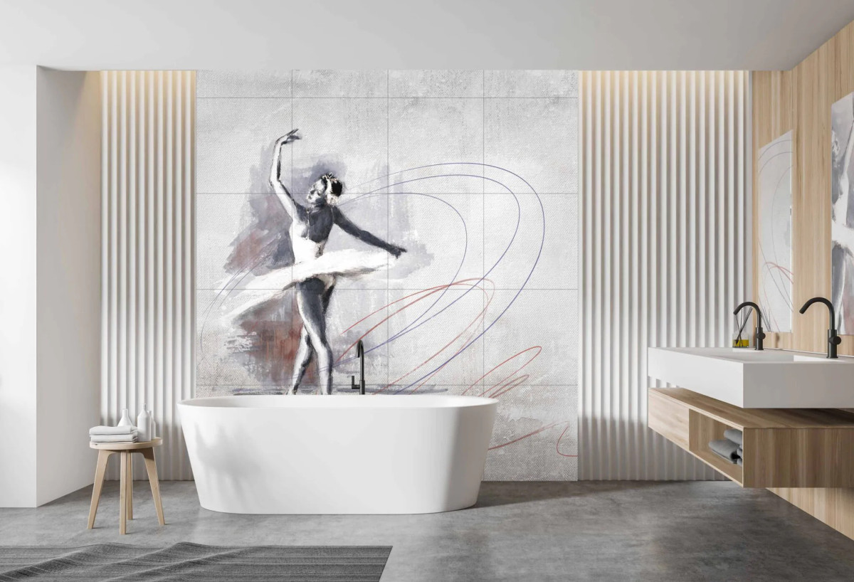 & Free ShippingObraz składa się z 20 elementów Wymiar pojedynczej płytki gresowej 60×60 cm Wymiar obrazu w całości 300x240cm /strong> Płytka rektyfikowana Obraz wielkoformatowy Gres Balerina 300×240 cm Sztuka ściany — dekoracyjny panel o dużych wymiarach Balerina 300×240 to elegancki panel gresowy, który po ułożeniu tworzy jednolitą, harmonijną ścianę o wymiarach 300 × 240 cm. Dzięki formatowi XXL i starannie zaprojektowanej kompozycji, ściana zyskuje efekt