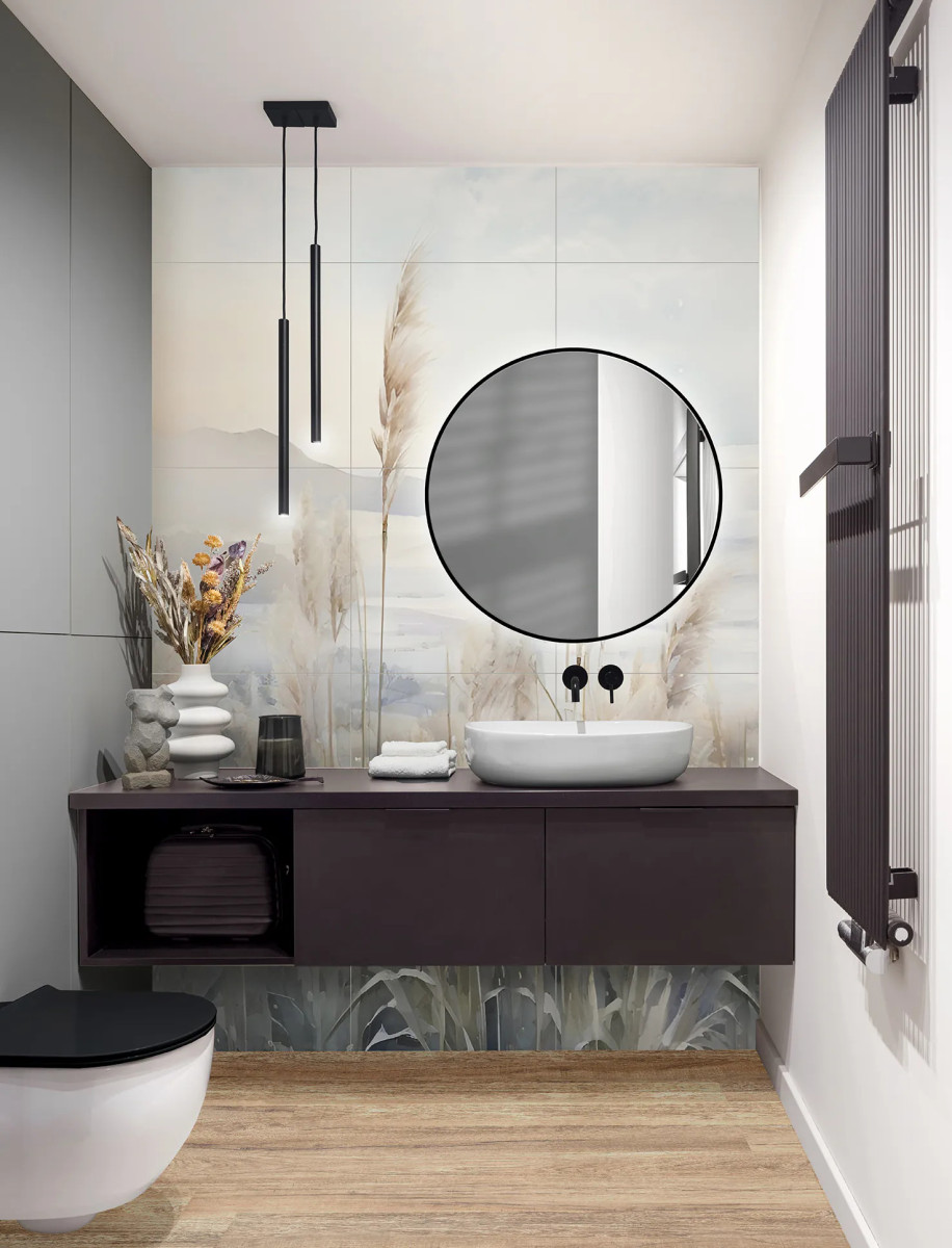 Czyszczenie: łagodne detergenty + miękka ściereczka . Nie stosować szorstkich gąbek. Obraz wielkoformatowy Pampas – subtelne piękno natury w nowoczesnym wydaniu Wyjątkowa dekoracja ścienna z gresu Obraz wielkoformatowy Pampas to elegancka i trwała dekoracja wykonana z wysokiej jakości gresu. Inspirowany delikatnymi trawami pampasowymi, wprowadza do wnętrza ciepło, harmonię i naturalny spokój. Jasna kolorystyka – beże, kremy i odcienie szarości – doskonale komponuje się z aranżacjami w stylu boho, skandynawskim, minimalistycznym czy naturalnym. Połączenie designu i trwałości Każdy obraz powstaje z płytek gresowych klasy premium, które charakteryzują się wyjątkową odpornością na czynniki zewnętrzne. Nasiąkliwość Eb ≤ 0,5% – gres nie chłonie wody i jest odporny na wilgoć. Wysoka twardość i odporność na ścieranie – idealny do intensywnie użytkowanych wnętrz. Odporność na temperaturę i promieniowanie UV – kolory pozostają nasycone przez wiele lat. Klasa ognioodporności A1 – bezpieczeństwo użytkowania w każdej przestrzeni. Dzięki nowoczesnej technologii druku cyfrowego ceramicznego, każdy detal kompozycji jest wyraźny i realistyczny, a całość wygląda jak prawdziwe dzieło sztuki. Uniwersalne zastosowanie Obraz Pampas to nie tylko ozdoba ściany – to sposób na nadanie wnętrzu wyjątkowego klimatu.