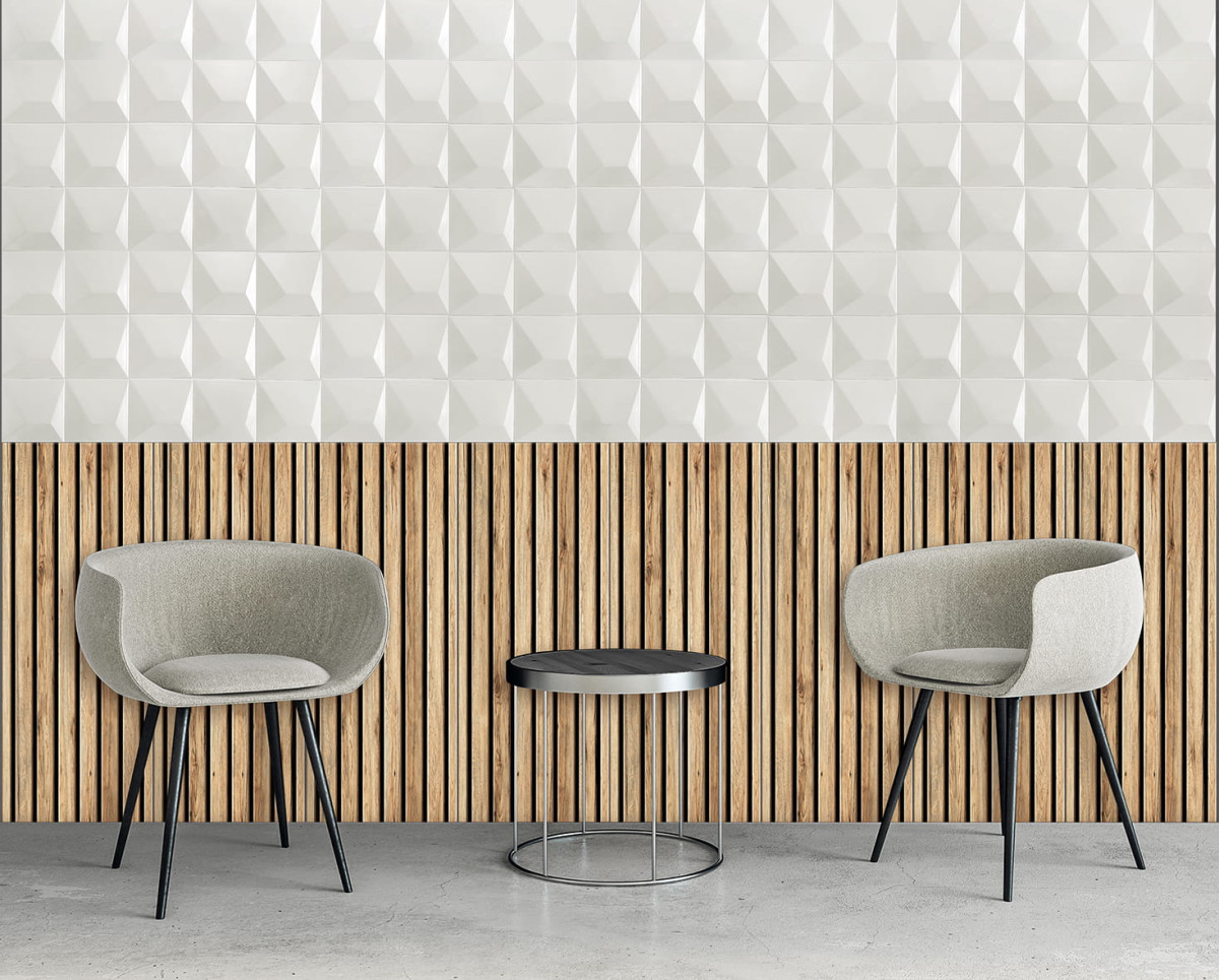 Struktura 3D tworzy ciekawą grę światła i cieni, a neutralna biel dopasowuje się do praktycznie każdego stylu – od nowoczesnego po skandynawski. Zastosowanie Cube 3D White Matt Łazienki i prysznice – idealna na ściany, tworzy nowoczesną, odporną na wilgoć mozaikę. Kuchnie – efektowny panel nad blatem, łatwy w utrzymaniu czystości. Salony i sypialnie – dekoracyjna ściana akcentowa lub panel za TV. Przedpokoje i korytarze – jasna mozaika optycznie powiększa przestrzeń. Biura, salony usługowe, butiki – modna, minimalistyczna dekoracja ścienna. Dlaczego warto wybrać Cube 3D White Matt To połączenie estetyki geometrycznej mozaiki z funkcjonalnością ceramiki: trwałość, odporność na wilgoć, łatwa pielęgnacja i efektowna struktura 3D sprawiają, że płytka świetnie prezentuje się zarówno jako dekor, jak i na większych powierzchniach. Idealna dla osób, które szukają nowoczesnego, ale subtelnego akcentu we wnętrzu.