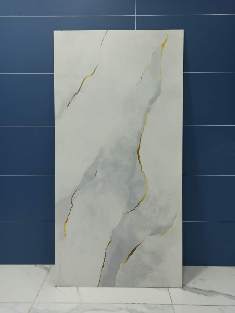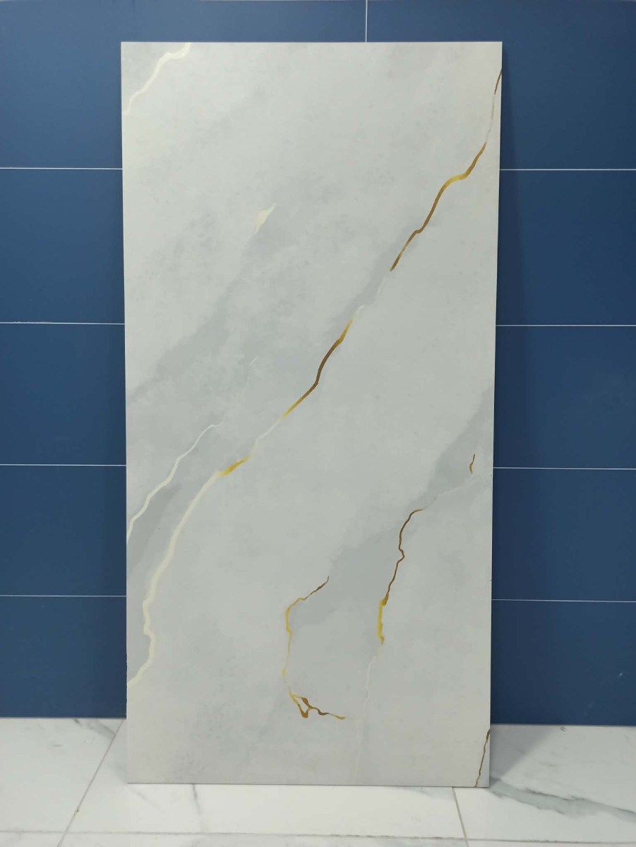Gold Vein Marble White mat 60×120 cm GAT I – Płytki gresowe imitujące marmur w białym odcieniu ze złotymi żyłami | e-plytki.eu Opis produktu: Gold Vein Marble White mat 60×120 cm – Elegancka imitacja białego marmuru ze złotymi akcentami Płytki gresowe Gold Vein Marble White mat w wielkim formacie 60×120 cm to idealna propozycja dla osób ceniących klasyczną elegancję i luksus w ponadczasowym wydaniu. Kolekcja wyróżnia się wysokim gatunkiem I (GAT I) oraz klasą ścieralności PEI 4 (WCC), co gwarantuje doskonałą trwałość i odporność na codzienne użytkowanie. Matowa powierzchnia z wiernym odwzorowaniem białego marmuru Carrara, ozdobionego delikatnymi złotymi żyłami, nadaje wnętrzom subtelnego blasku, czystości i wyrafinowanego charakteru. Wielkoformatowe płytki 60×120 cm pozwalają na stworzenie niemal bezspoinowej, monolitycznej powierzchni – doskonałej do salonów, łazienek, kuchni, holów wejściowych czy prestiżowych przestrzeni komercyjnych w stylu klasycznym, modern classic, glamour lub minimalistycznym. Dane techniczne płytek Gold Vein Marble White mat 60×120 cm Producent: Import / kolekcja premium Format: 60 × 120 cm Grubość: Ok. 10 mm Gatunek: I (GAT I) Klasa ścieralności: PEI 4 / WCC (wysoka odporność na ścieranie) Wykończenie: Matowe Rektyfikacja: Tak (precyzyjne krawędzie dla minimalnych fug) Nasiąkliwość: Niska (