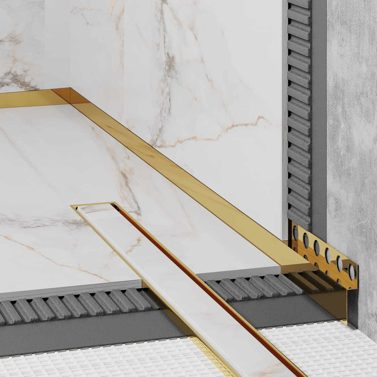 Listwy brodzikowe dedykowane do odpływów liniowych stanowią najwyższej jakości rozwiązanie dla tych, którzy cenią sobie profesjonalne podejście do wykończenia swojej łazienki. Wykonane z wysokogatunkowej stali nierdzewnej (gr. 0.8mm) oraz poddane zaawansowanej technologii koloryzacji – PVD wyróżniają się wyjątkową trwałością i odpornością na korozję, co zapewnia długotrwały nienaganny wygląd produktu.