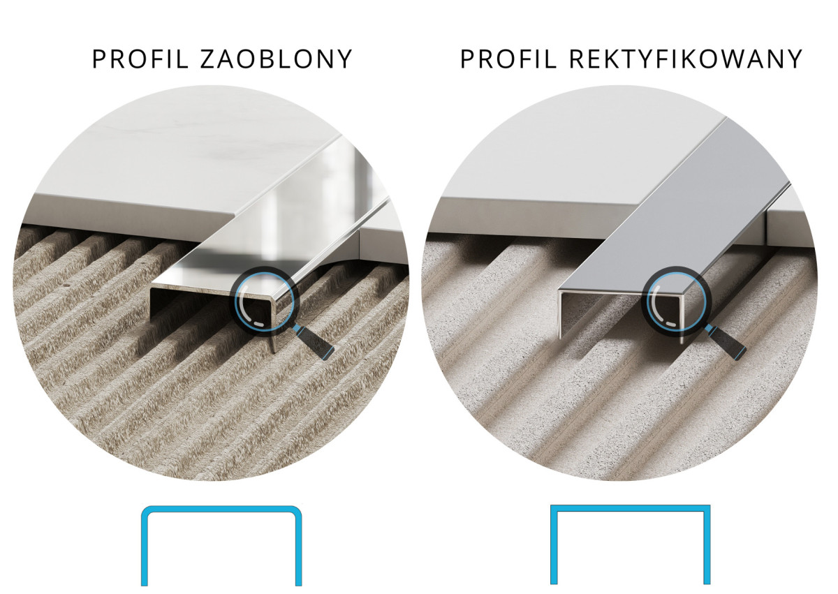 Profile tego typu, są doskonałym elementem aranżacji pomieszczeń takich jak łazienka, kuchnia czy salon. Stanowią dopełnienie kompozycji dla płytek ściennych, dekorów i mozaik. Współgrają również z betonem architektonicznym, płytami meblowymi czy panelami tapicerowanymi. Zastosowana zaawansowana technologia koloryzacji stali – PVD – zapewnia trwałą, piękną barwę, a długość profili pozwala na montaż zarówno poziomy jak i pionowy –  umożliwia to łatwe dopasowanie do każdego pomieszczenia. Dodatkowo, wszystkie nasze profile można swobodnie dociąć do odpowiednej długości. Po przeprowadzeniu cięcia, krawędzie produktu nadal prezentują się doskonale – nie ma ryzyka topienia się materiału, co zdecydowanie ułatwia pracę z naszymi produktami