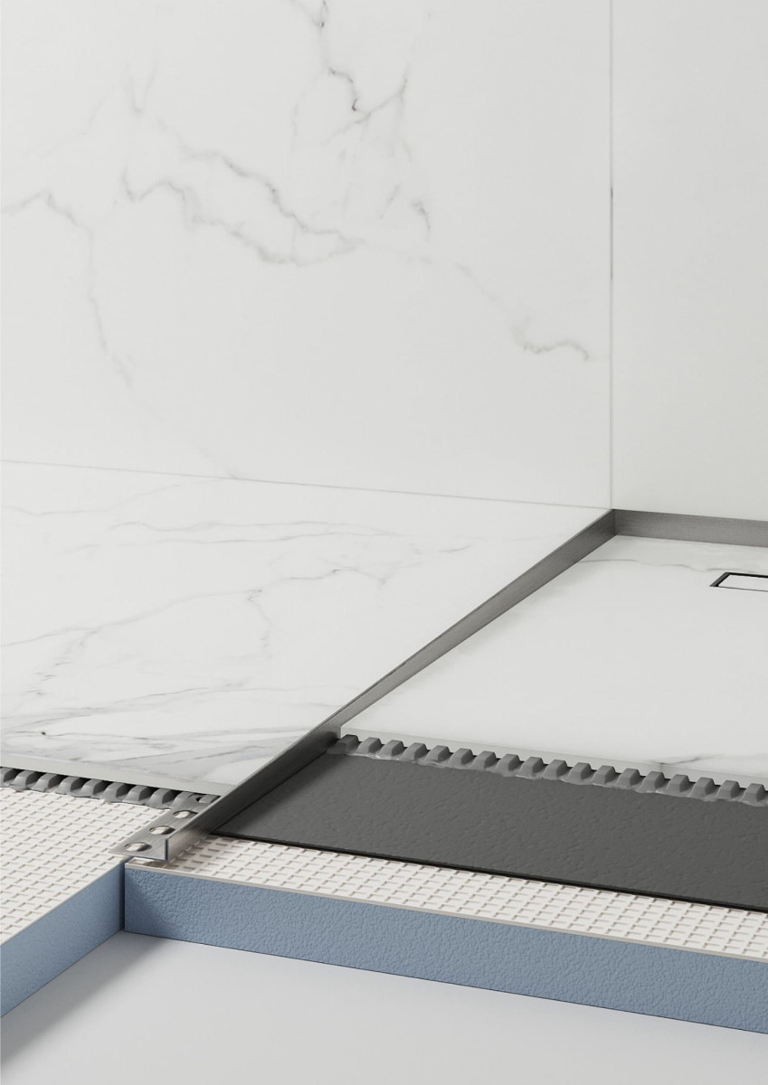 Listwy spadkowe dedykowane do odpływów liniowych stanowią najwyższej jakości rozwiązanie dla tych, którzy cenią sobie profesjonalne podejście do wykończenia swojej łazienki. Listwa rozszerza się w kierunku odpływu, co wymusza 2% spadek. Wykonana z wysokogatunkowej stali nierdzewnej (gr. 0.8mm) oraz malowana proszkowo, wyróżnia się wyjątkową trwałością i odpornością na korozję, co zapewnia długotrwały nienaganny wygląd produktu.