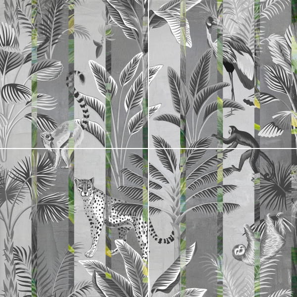 & Free ShippingMural gresowy Safari 4‑elementowy Mat 120×120 – egzotyczna natura w wielkim formacie Mural gresowy Safari 4‑elementowy Mat 120×120 to zestaw czterech dużych płytek, które razem tworzą imponujący motyw safari. Grafika inspirowana tropikalną roślinnością i dzikimi krajobrazami w subtelnym, matowym wykończeniu wprowadza do wnętrza naturalny, elegancki akcent. Cechy techniczne i zalety Duży format 120 × 120 cm (4 elementy) – mniej fug, bardziej spójna ściana dekoracyjna. Materiał: gres