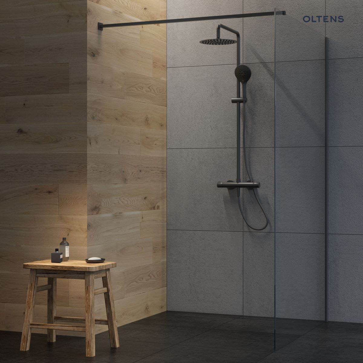 Oltens Atran zestaw prysznicowy termostatyczny z deszczownicą okrągłą czarny mat 36500300