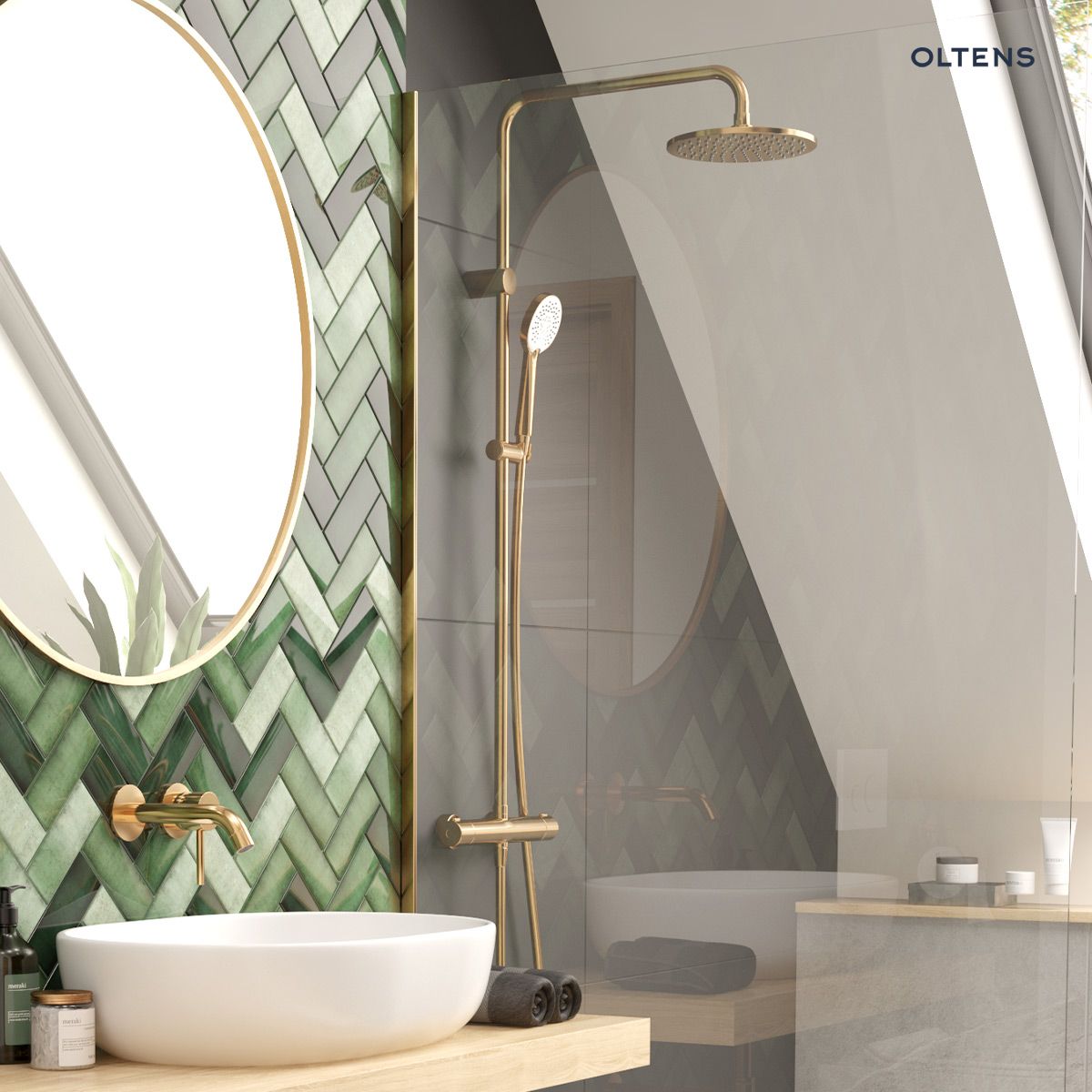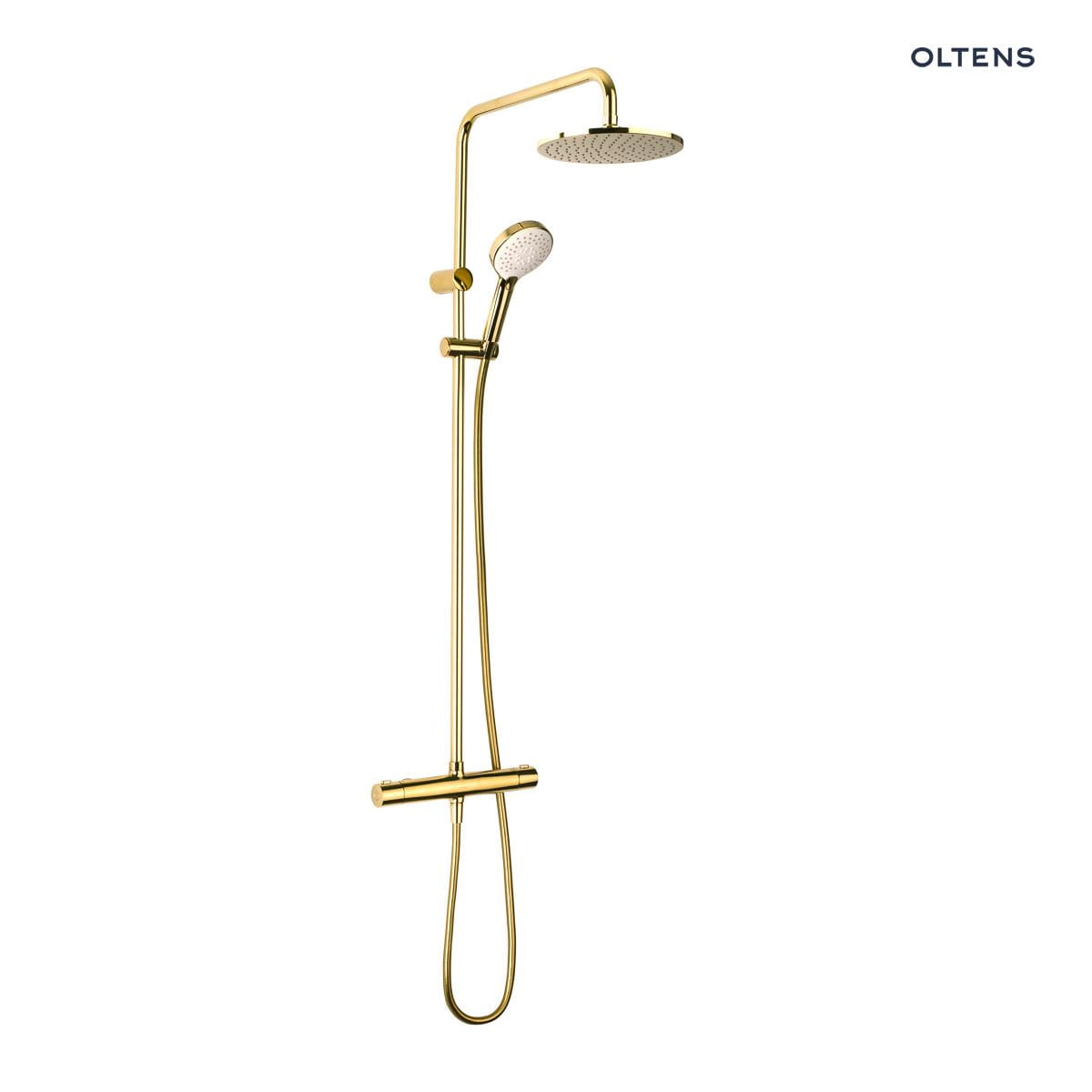 Oltens Atran zestaw prysznicowy termostatyczny z deszczownicą okrągłą złotą 36500800