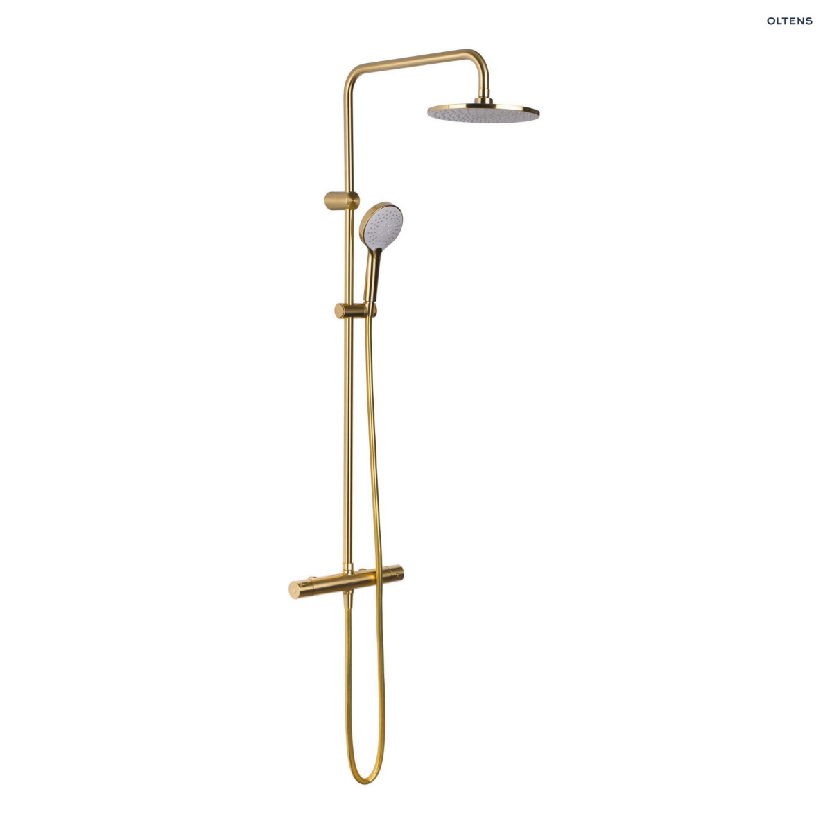 Oltens Atran zestaw prysznicowy termostatyczny z deszczownicą okrągłąoto szczotkowane 36500810