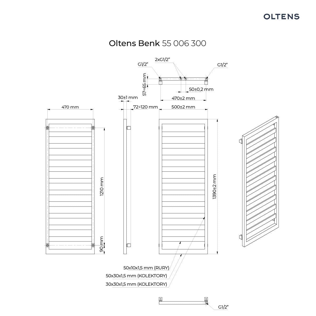 Oltens Benk grzejnik łazienkowy 139×50 cm czarny mat 55006300