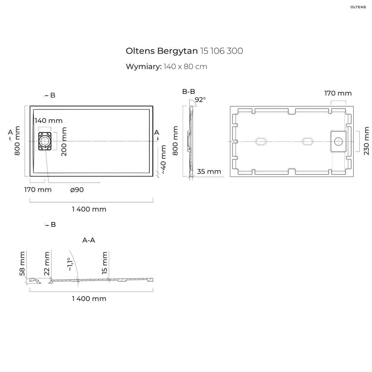 & Free ShippingKolekcja Bergytan Dłuższy bok 140.0000 Kolor czarny Krótszy bok 80.0000 Materiał Z konglomeratu Średnica odpływu 90.0000