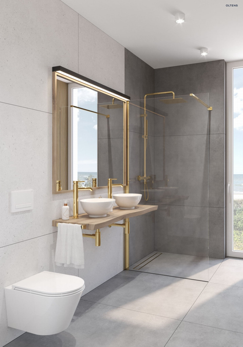 Kolekcja Boran Kolor Złoty Montaż Ścienny Rodzaj Z termostatem W zestawie Bateria z przełącznikiem