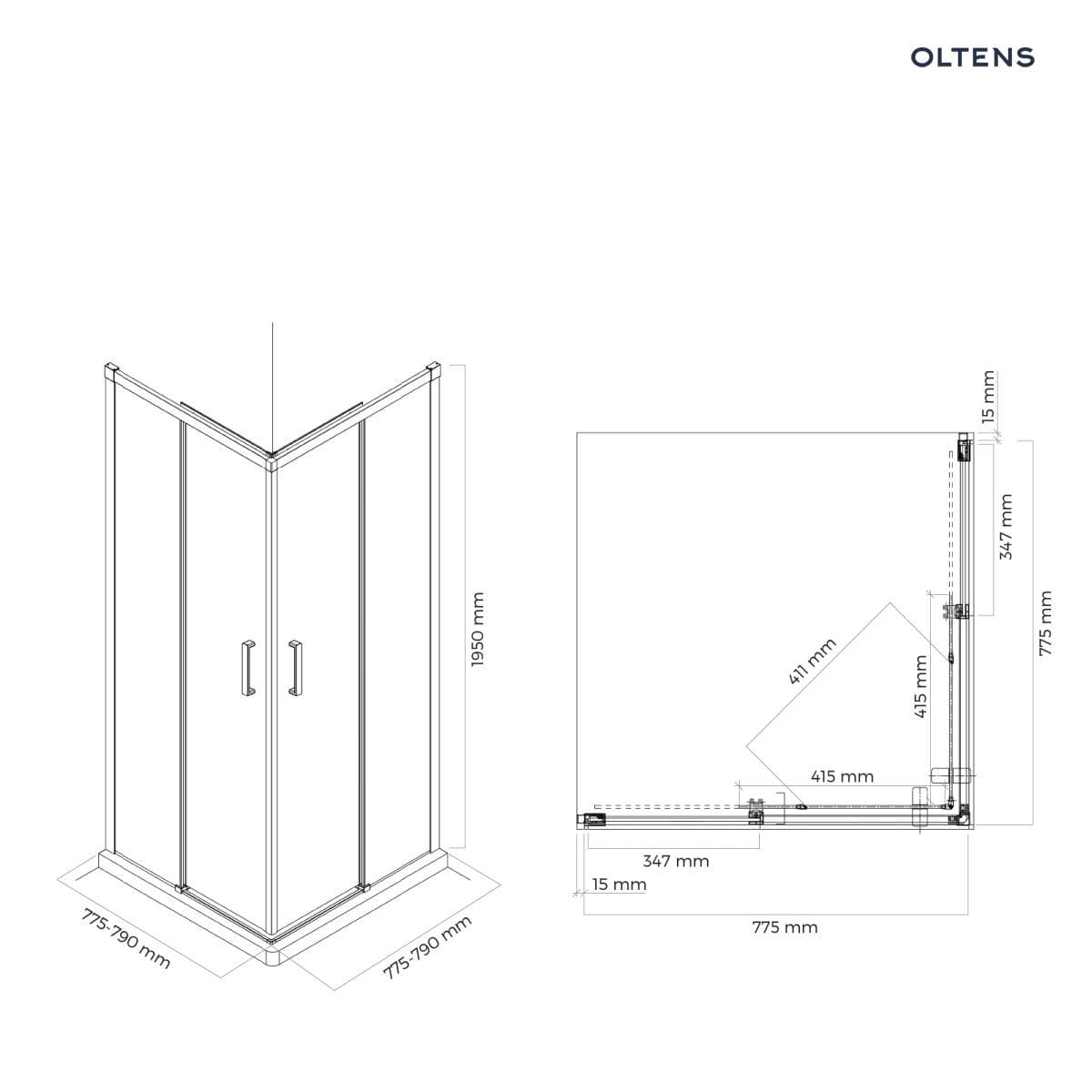 Oltens Breda kabina prysznicowa 80×80 cm kwadratowa chrom/szkło przezroczyste 20005100
