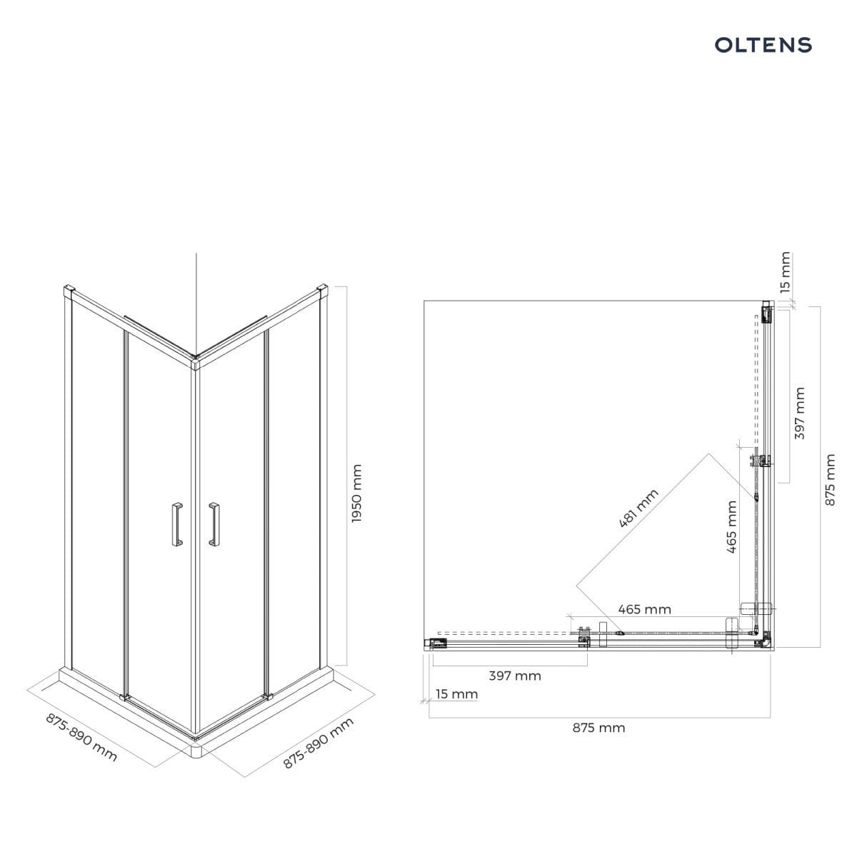 Oltens Breda kabina prysznicowa 90×90 cm kwadratowa chrom/szkło przezroczyste 20006100