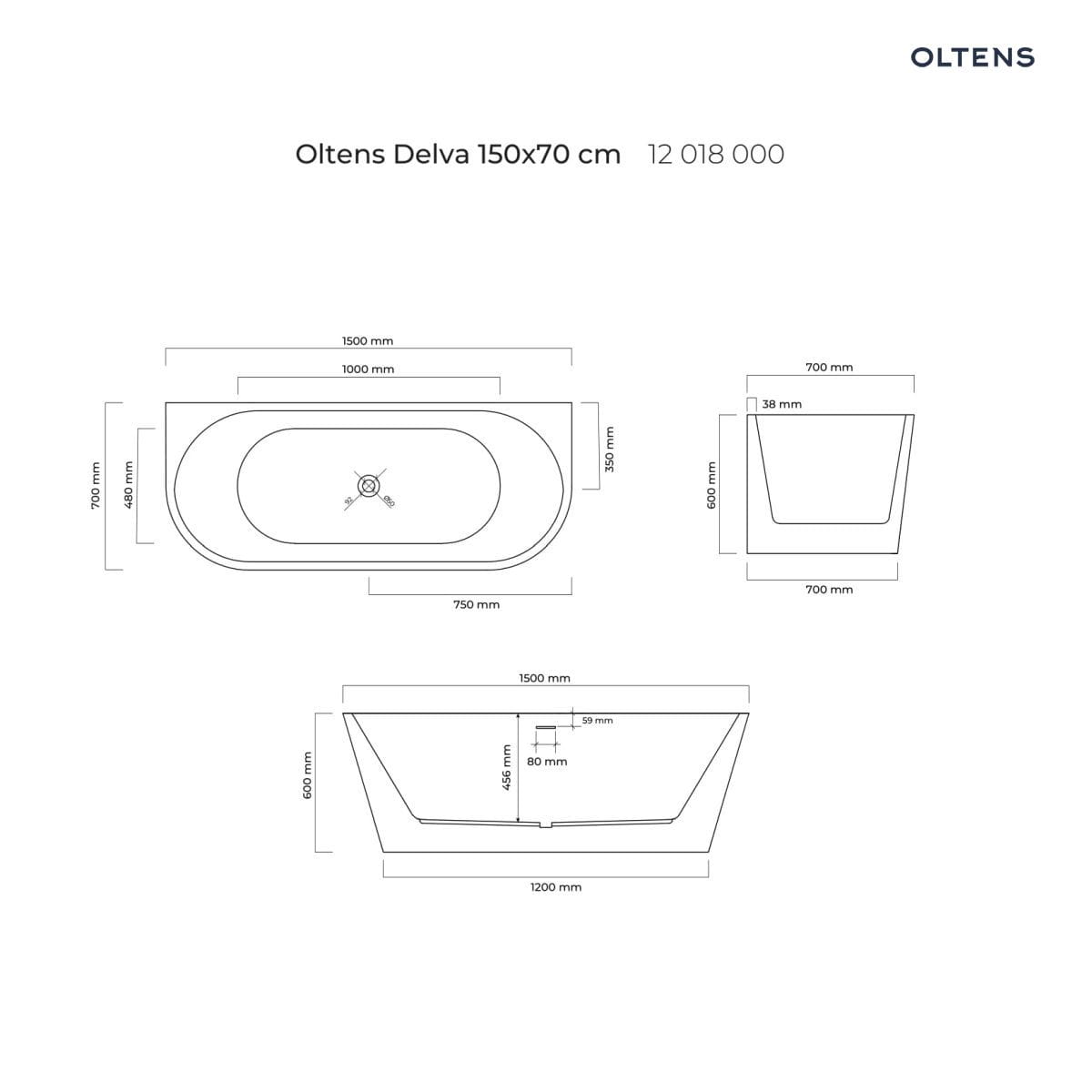 Oltens Delva wanna przyścienna 150×70 cm akrylowa owalna biała 12018000