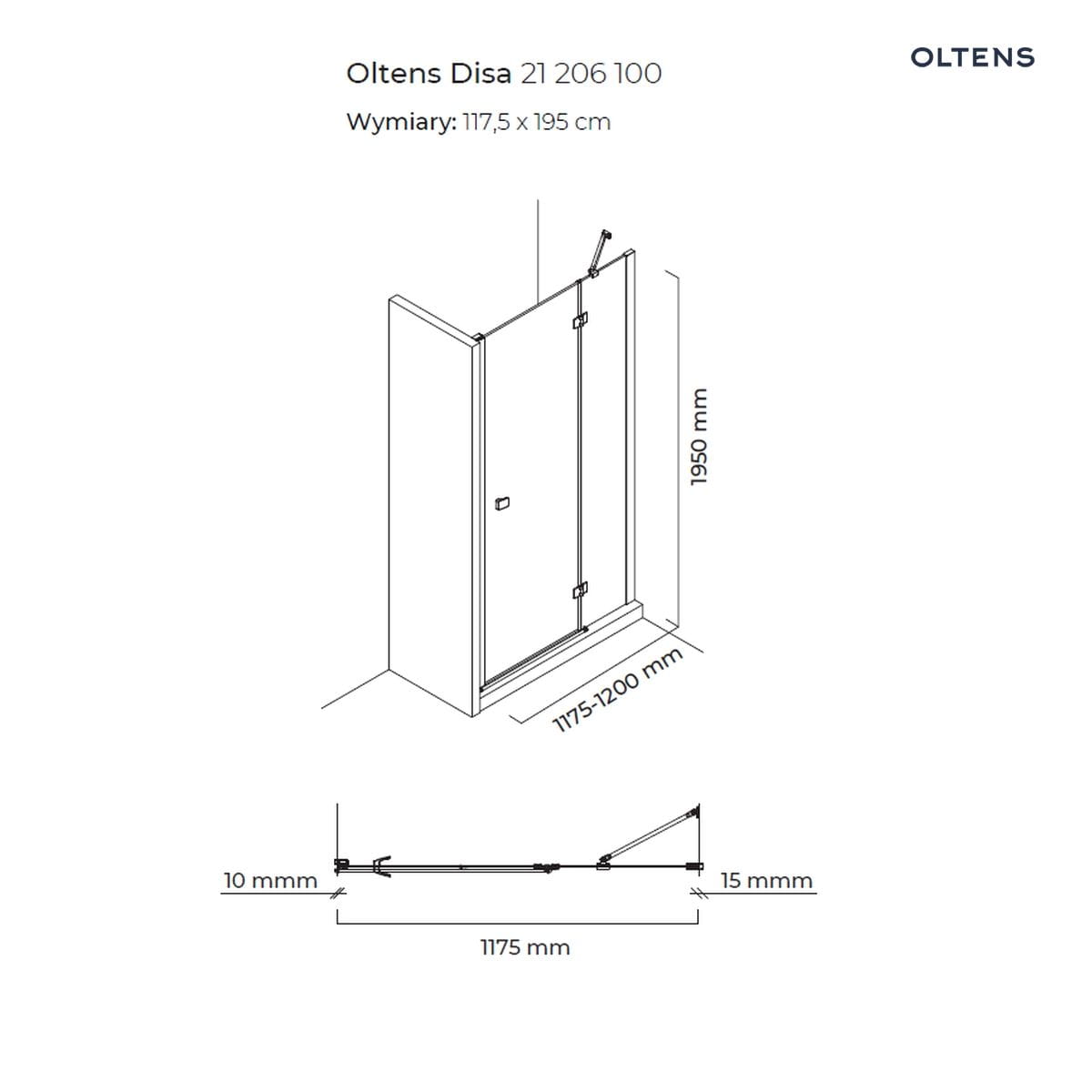 Oltens Disa drzwi prysznicowe 120 cm wnękowe 21206100