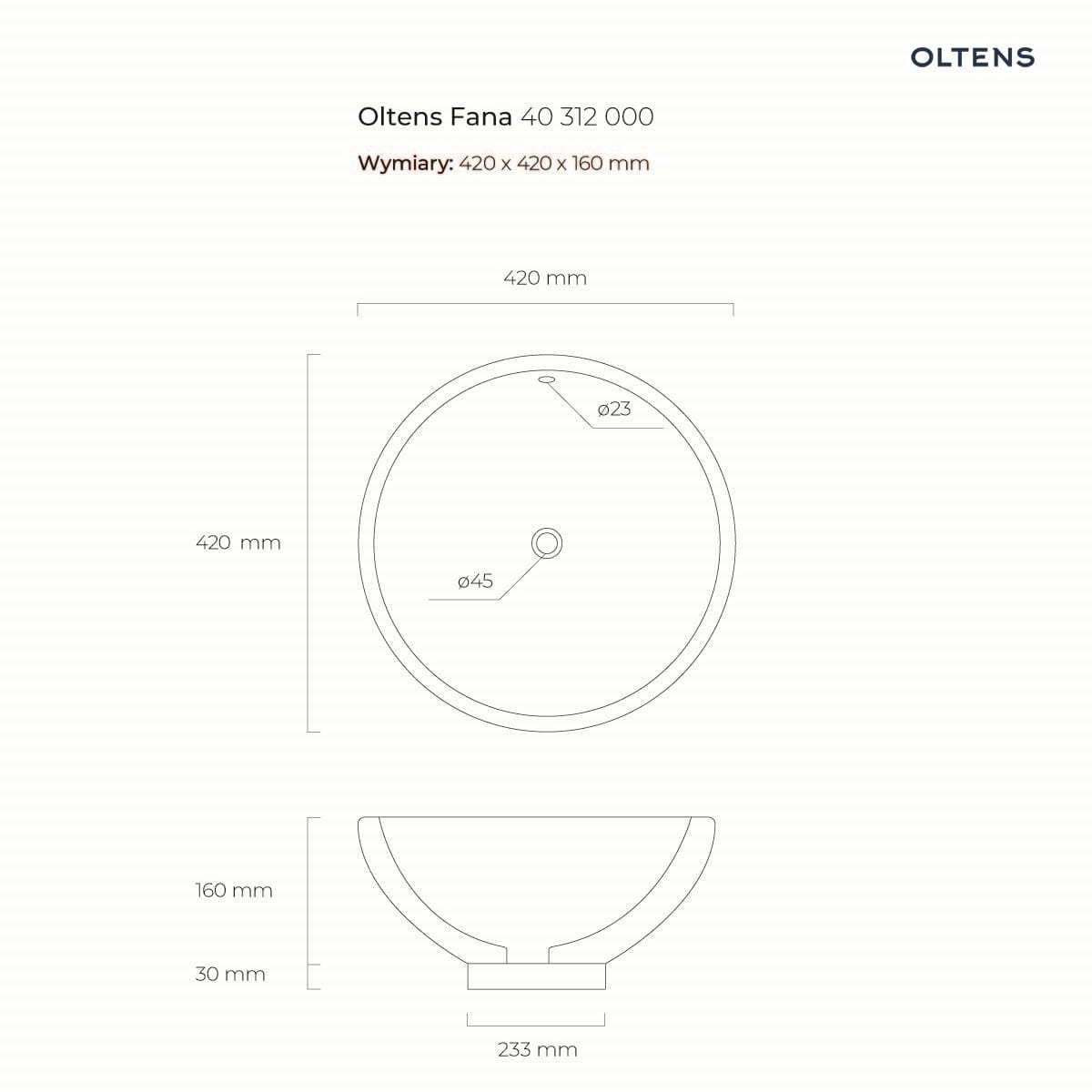 Oltens Fana umywalka 42 cm nablatowa okrągła biała 40312000