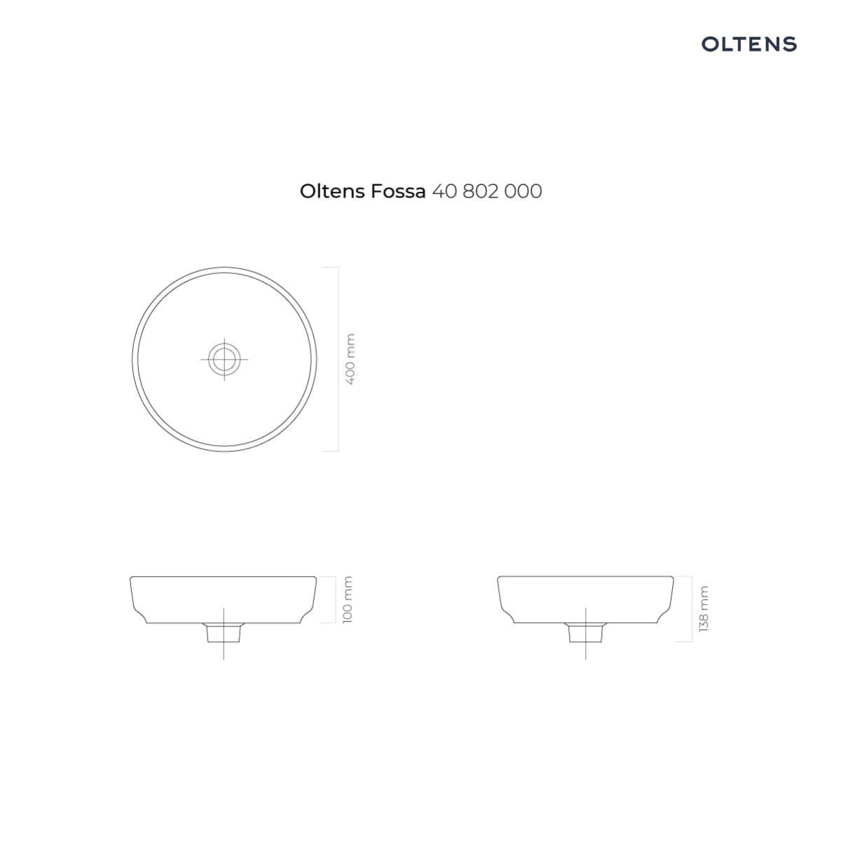 Oltens Fossa umywalka 40 cm nablatowa z powłoką SmartClean biała 40802000