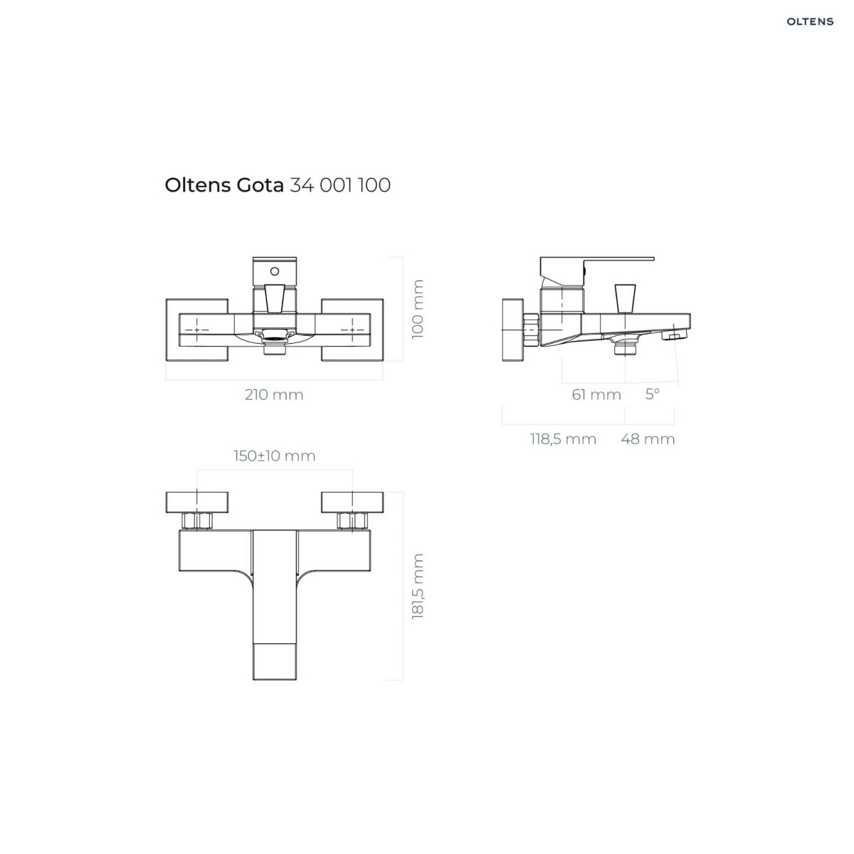 Oltens Gota bateria wannowo-prysznicowa ścienna chrom 34001100