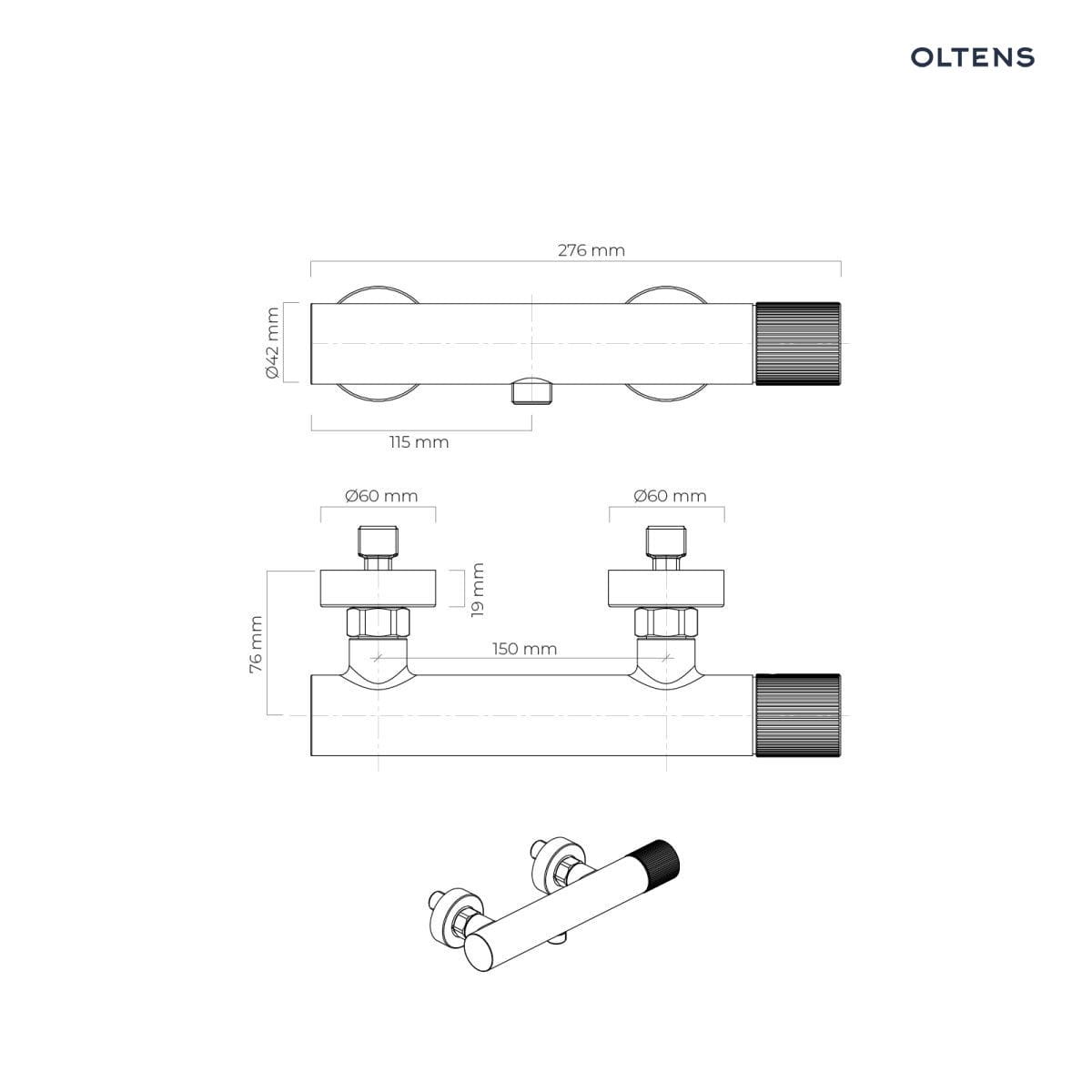 Oltens Hamnes bateria prysznicowa ścienna czarny mat 33005300