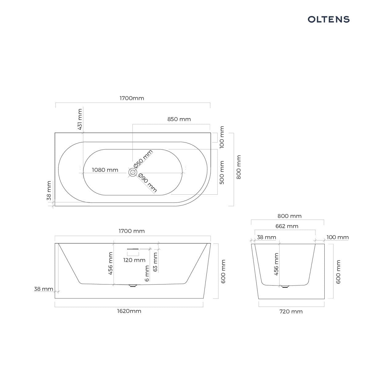 Oltens Hulda wanna wolnostojąca 170×80 cm narożna lewa biały połysk 11005000