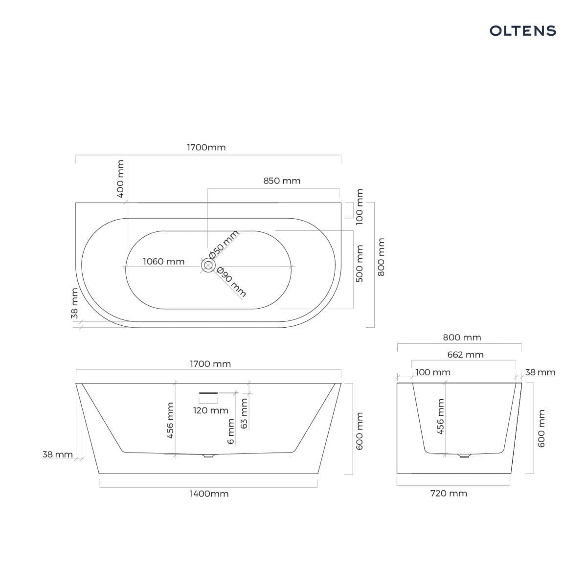Oltens Hulda wanna wolnostojąca 170×80 cm przyścienna biały połysk 12021000