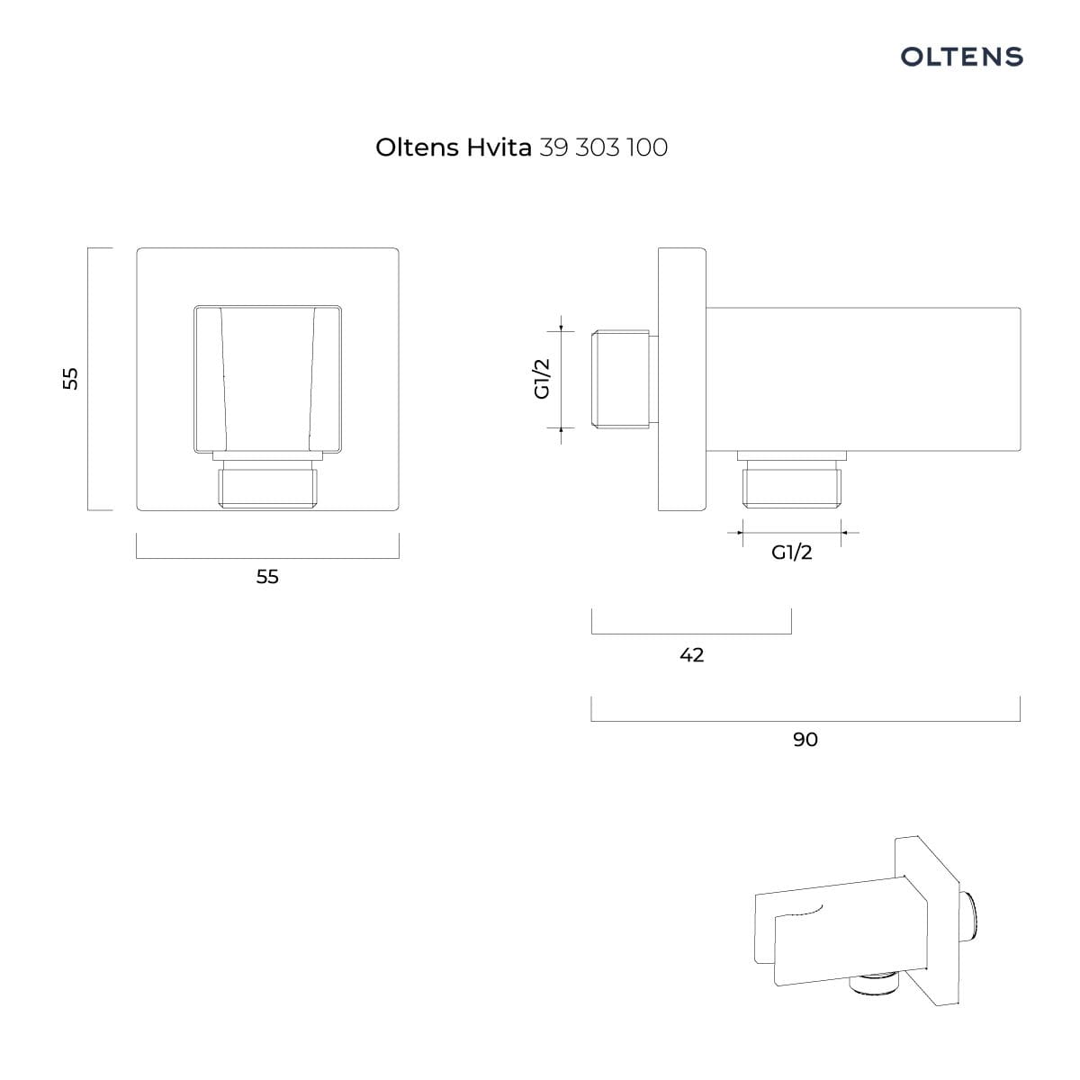 Oltens Hvita (S) przyłącze kątowe z uchwytem kwadratowe chrom 39303100