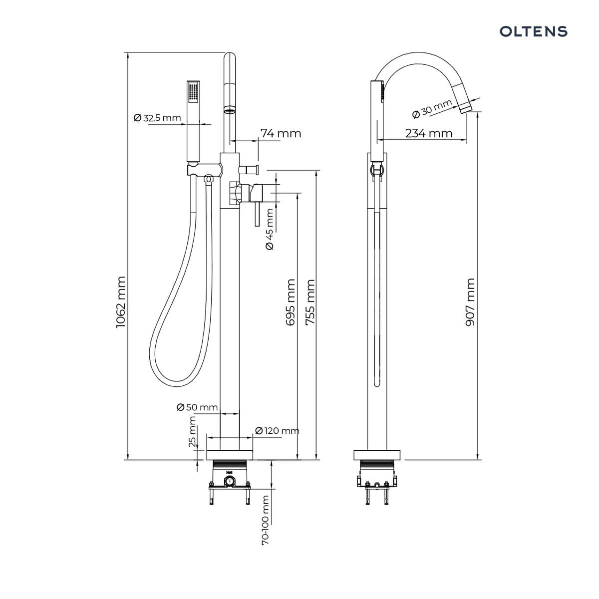 Oltens Molle bateria wannowo-prysznicowa kompletna wolnostojąca grafit 34300400