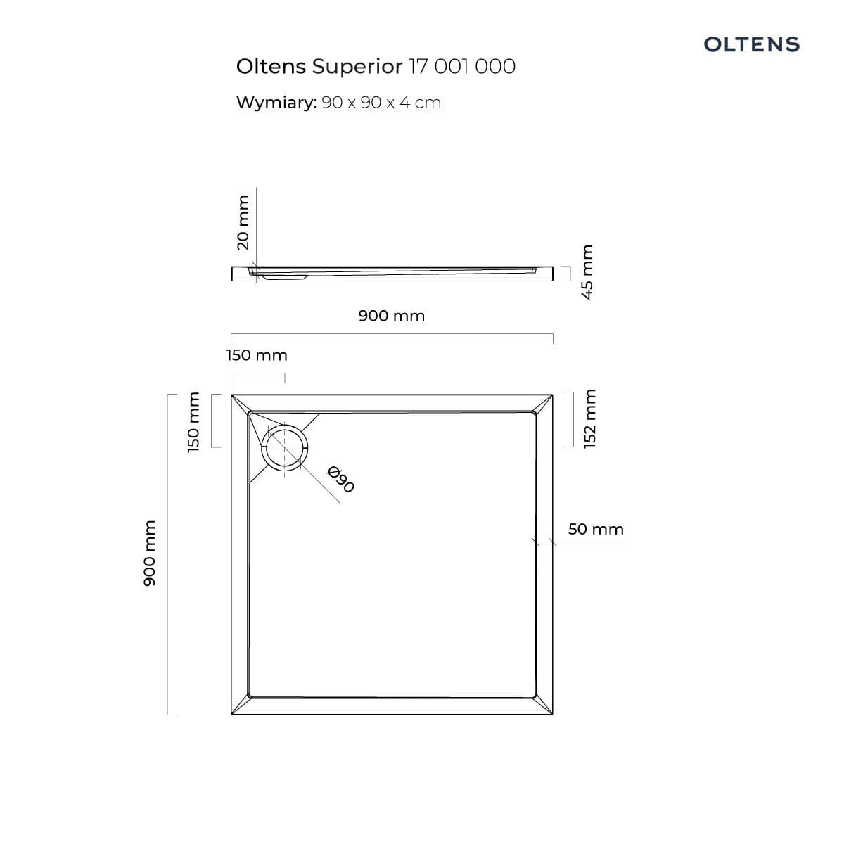 Oltens Superior brodzik kwadratowy 90×90 cm akrylowy biały 17001000