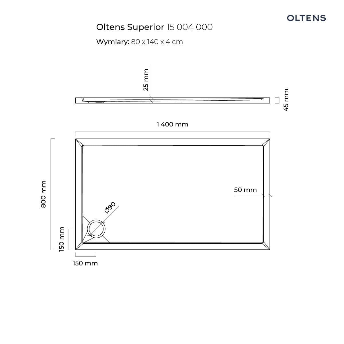 Kolekcja Superior Dłuższy bok 140.0000 Głębokość 2.5000 Kolor biały Krótszy bok 80.0000 Materiał Akrylowy Średnica odpływu 90.0000