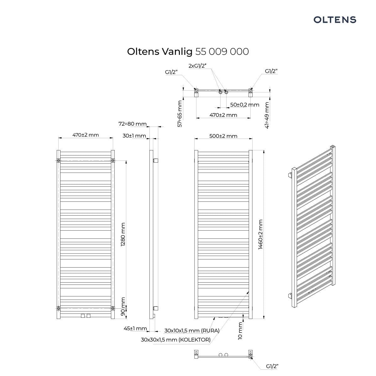 Oltens Vanlig grzejnik łazienkowy 146×50 cm biały 55009000