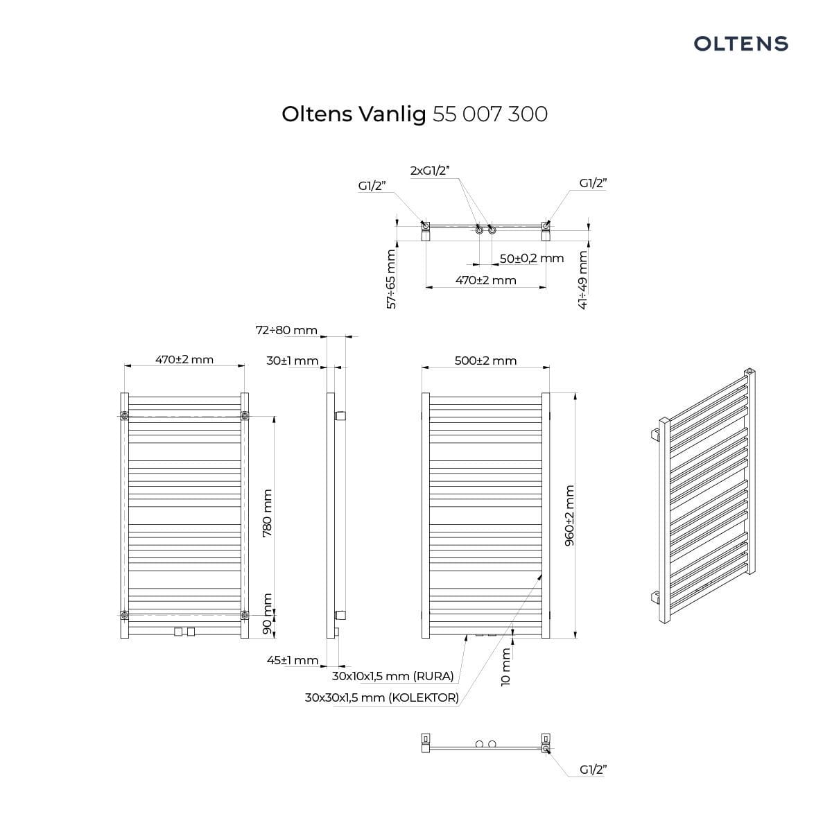 Oltens Vanlig grzejnik łazienkowy 96×50 cm czarny mat 55007300