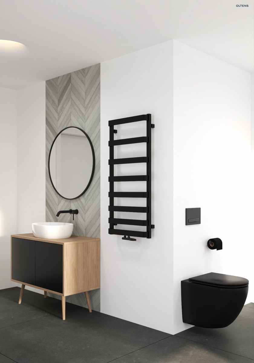 Oltens Varme grzejnik łazienkowy 108.5×50 cm czarny mat 55001300