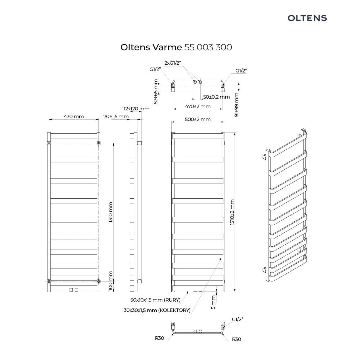 Kolekcja Varme Kolor czarny Moc 557.0000 Podłączenie Dolne Rodzaj Drabinkowy Szerokość 50.0000 Wysokość 151.0000
