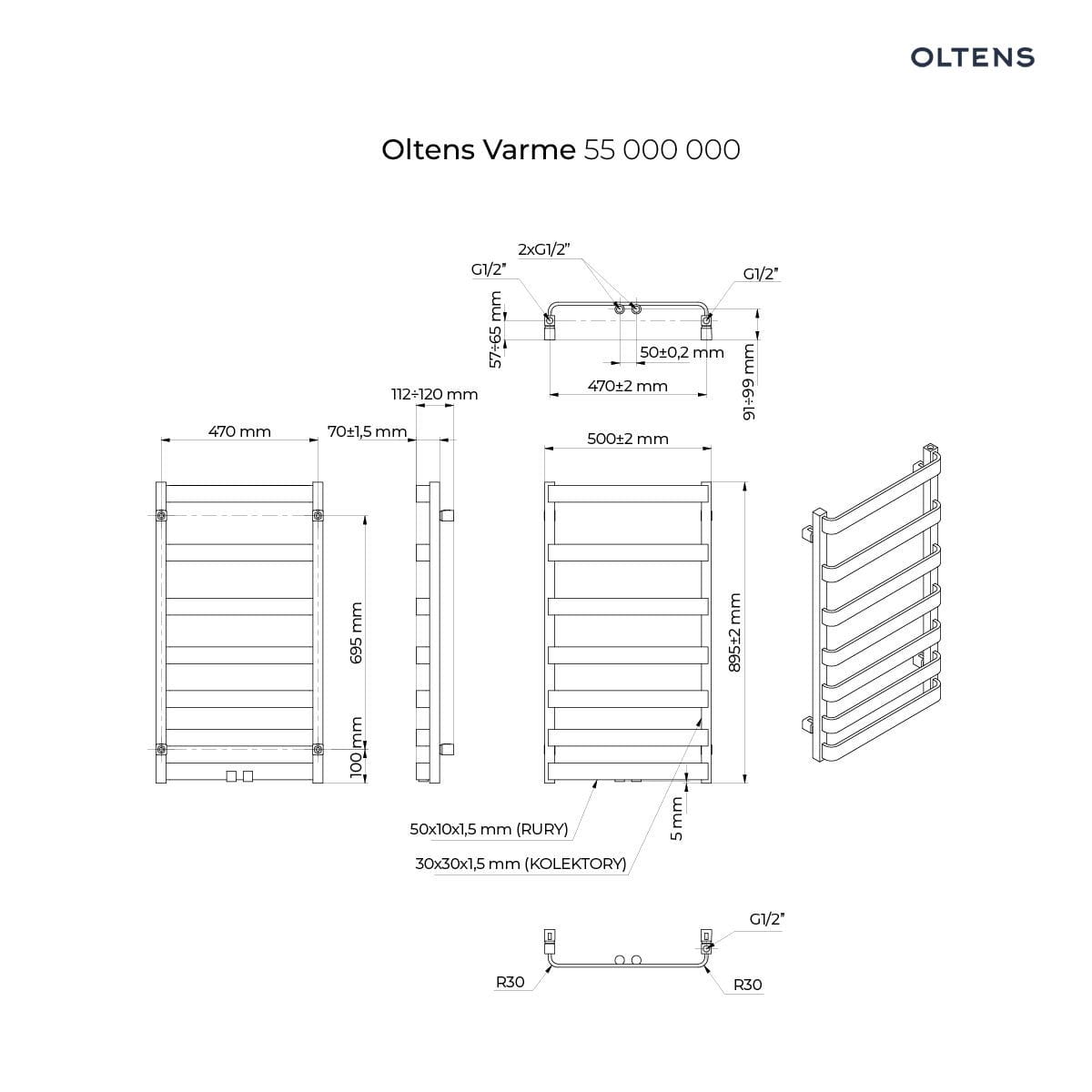 Oltens Varme grzejnik łazienkowy 89.5×50 cm biały 55000000
