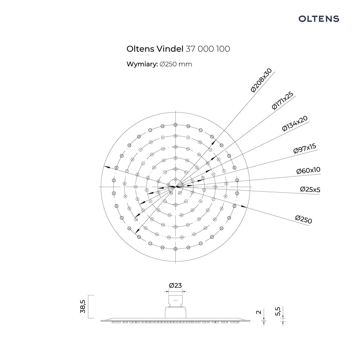 Oltens Vindel deszczownica 25 cm okrągła chrom 37000100