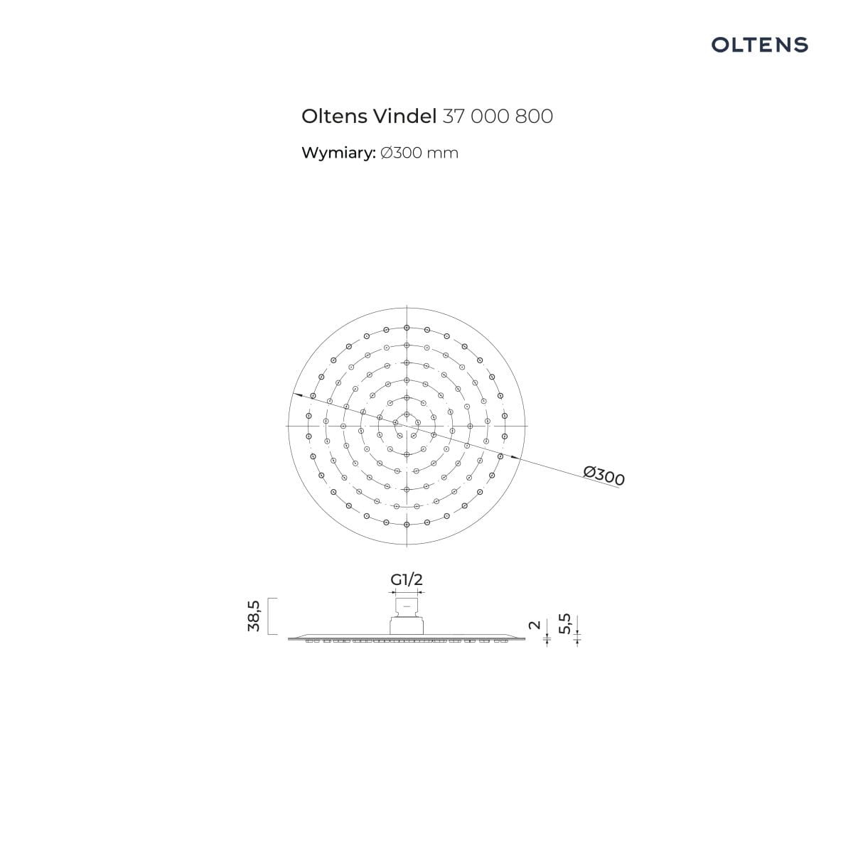 Oltens Vindel deszczownica 30 cm okrągła złota 37000800