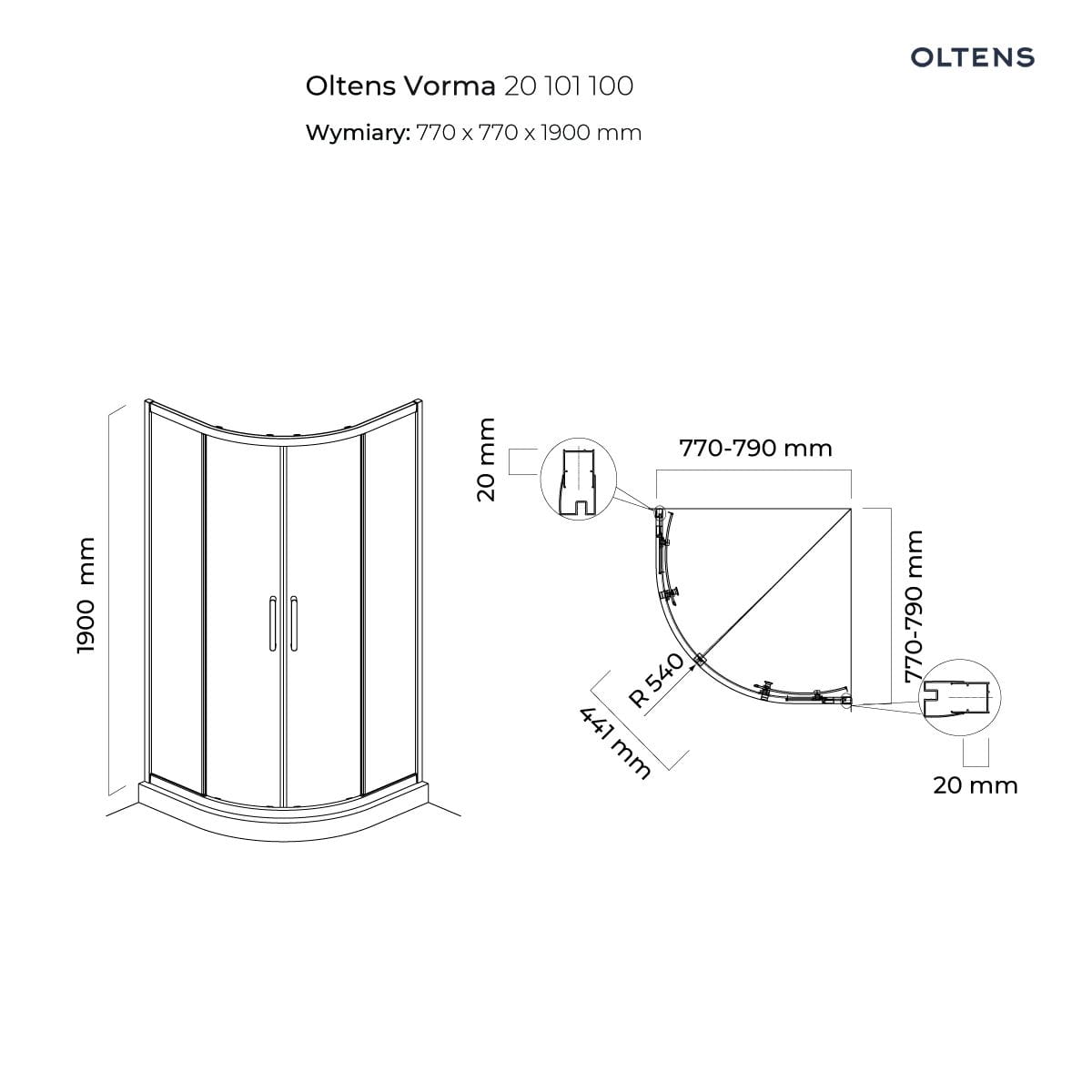 Oltens Vorma kabina prysznicowa 80×80 cm półokrągła 20101100