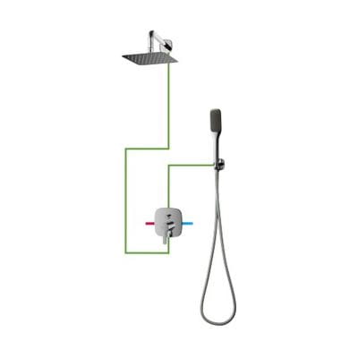 – W zestawie: Bateria z przełącznikiem, Deszczownica, Słuchawka prysznicowa, Wąż prysznicowy, Przyłącze kątowe