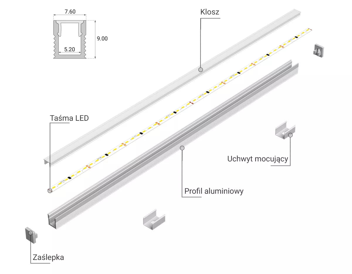 Pamiętaj, Profil aluminiowy LED NANO 1 stanowi tylko część zestawu potrzebnego do złożenia elementów oświetleniowych LED