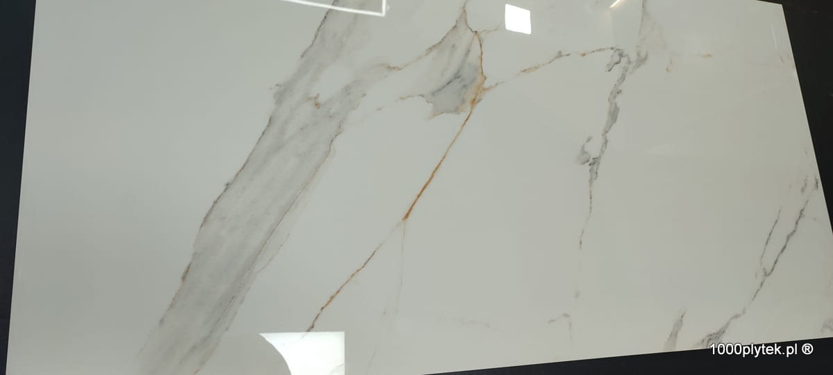 Opis produktu Dane techniczne : przeznaczenie : podłoga / ściana format : 60 x 120 cm materiał : gres rektyfikowana : tak tonalna mrozoodporna : tak stopień połysku : błyszcząca ilość w paczce : 1,44 m2 ilość w paczce : 2 szt. waga 1 paczki : 31,68 kg wzór z serii gresów polerowanych imirujących marmur carrara gold takich jak Marmo di oro gold, Coriento gold, Verona gold, Soul Gold Definicje :
