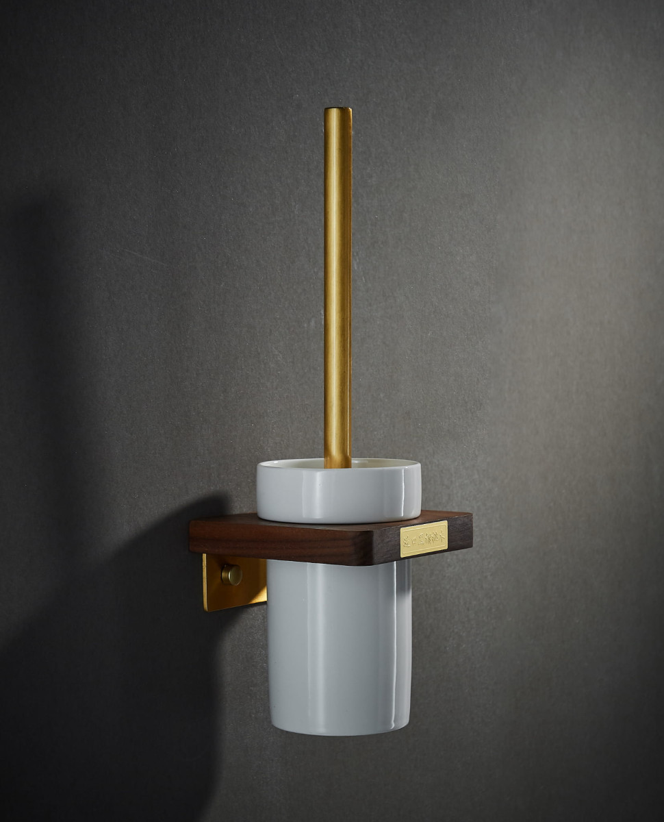 Złote elementy szczotki do toalety „DULCE” wykonane są z aluminium, które jest odporne na działanie wilgoci. Dodatkowo, proces szczotkowania podkreślił estetyczne walory, nadając wyjątkowy wygląd. Dzięki temu uchwyt jest nie tylko elegancki, ale także trwały i funkcjonalny.