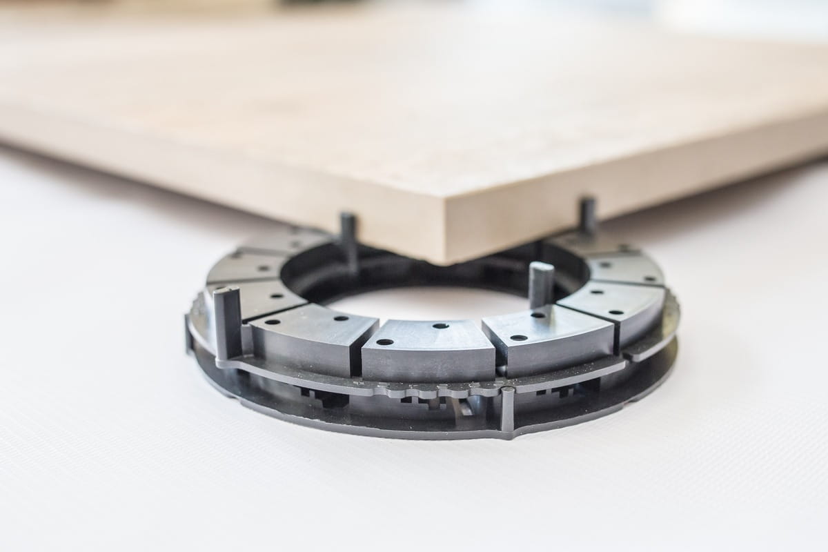 Przedmiot oferty: 1 szt. Podkładki tarasowej „C”, grubość 1 mm Jest to cienka podkładka, służąca do wyrównywania niewielkich nierówności. Nie ma zastosowania bez podstawki „A”. PARAMETRY Typ: C Wysokość: 1 mm Średnica wewnętrzna: 80 mm Średnica zewnętrzna: 140 mm Oddziaływanie na środowisko: Nieszkodliwe dla środowiska i neutralne dla wód gruntowych. Produkt jest odporny na działanie kwasów, ługów (sól do posypywania, amoniak, kwaśne deszcze itp.) i alkoholi Trwałość: min. 10 lat Kolor: Grafitowy System tarasowy Eko-Bord ABC …………………………………………………………………………………………………… System tarasowy Eko-Bord ABC składa się z trzech rodzajów „płytek” wykonanych z tworzywa sztucznego. Jest to podstawka „A”, podkładka „B” oraz „C”. Służą one jako podstawki dla płyt tarasowych, balkonowych itp. Charakteryzują się prostotą i wygodą przy montowaniu płyt. Podstawka „A” Jest niezależną częścią systemu, którą można stosować samodzielnie poprzez nałożenie jednej na drugą, co pozwala na zwiększanie wysokości o 10 mm, bądź można je zastosować w połączeniu z podkładkami „B” i „C” Podkładka „B” Służy do podłożenia pod podstawkę „A” i umożliwia podniesienie wysokości od 12 do 20 mm co 2 mm. Regulacji dokonuje się poprzez przekręcenie podstawki „A” względem podstawki „B”. Odpowiednią wysokość wskazuje kołek dystansowy. Podkładka „C” Jest produktem uzupełniającym, służącym do niwelowania niewielkich nierówności w poziomie podłoża, bądź minimalnych różnic w wysokościach płyt tarasowych wynikających z ich produkcji. Podkładka daje możliwość regulacji wysokości o 1 mm, oraz pozwala np. na zastosowanie jej w danym miejscu na podstawce „A” poprzez jej docięcie.