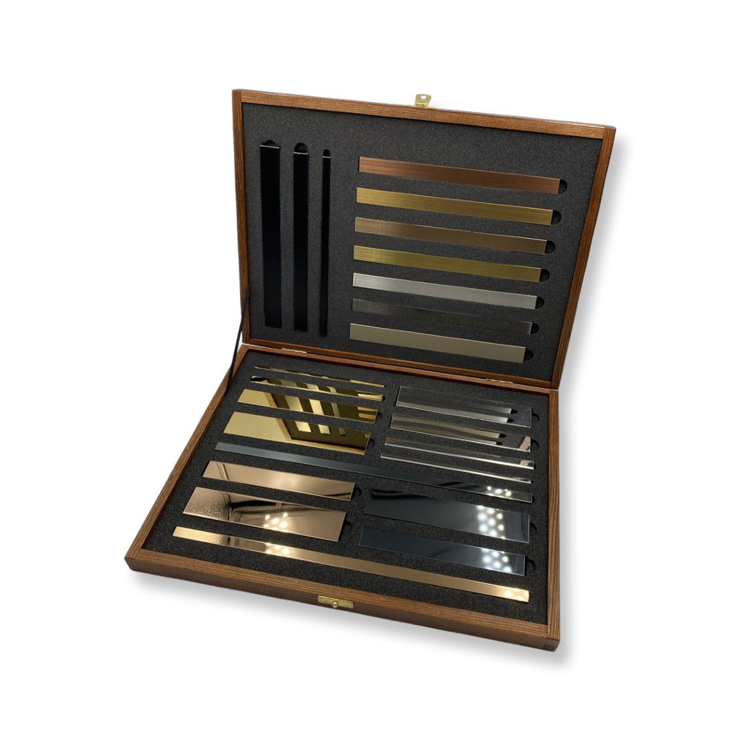 Wzorniki produktowe to nieocenione narzędzie dla projektantów wnętrz, architektów oraz klientów indywidualnych, którzy pragną dokonać najlepszego wyboru materiałów wykończeniowych. Oferujemy Państwu wzornik opakowany w eleganckie pudełko co ułatwia ich przechowywanie oraz prezentacje.