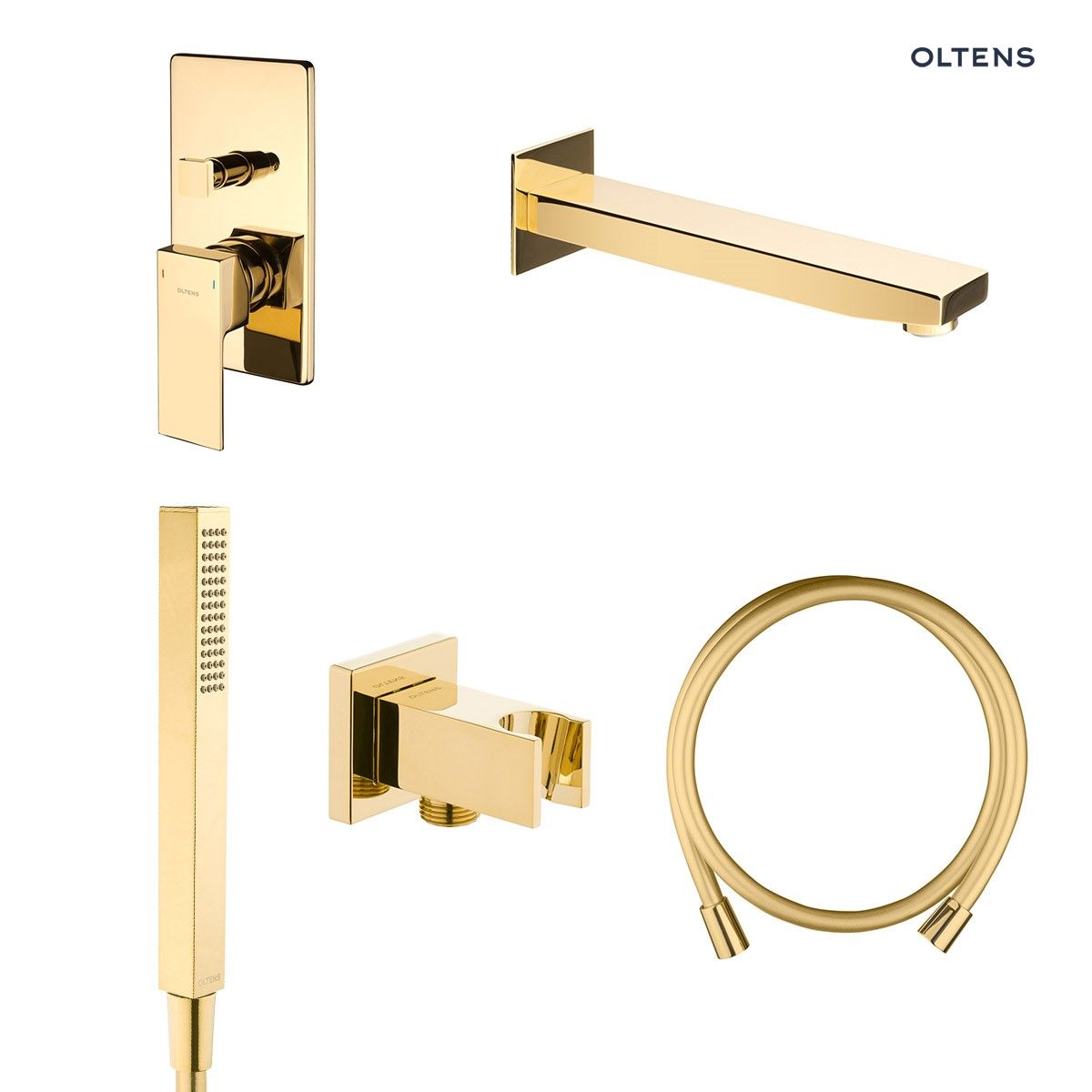 Zestaw Oltens Gota zestaw wannowo-prysznicowy podtynkowy złoty połysk (34101800,39101800,37103800,37200800,39303800)