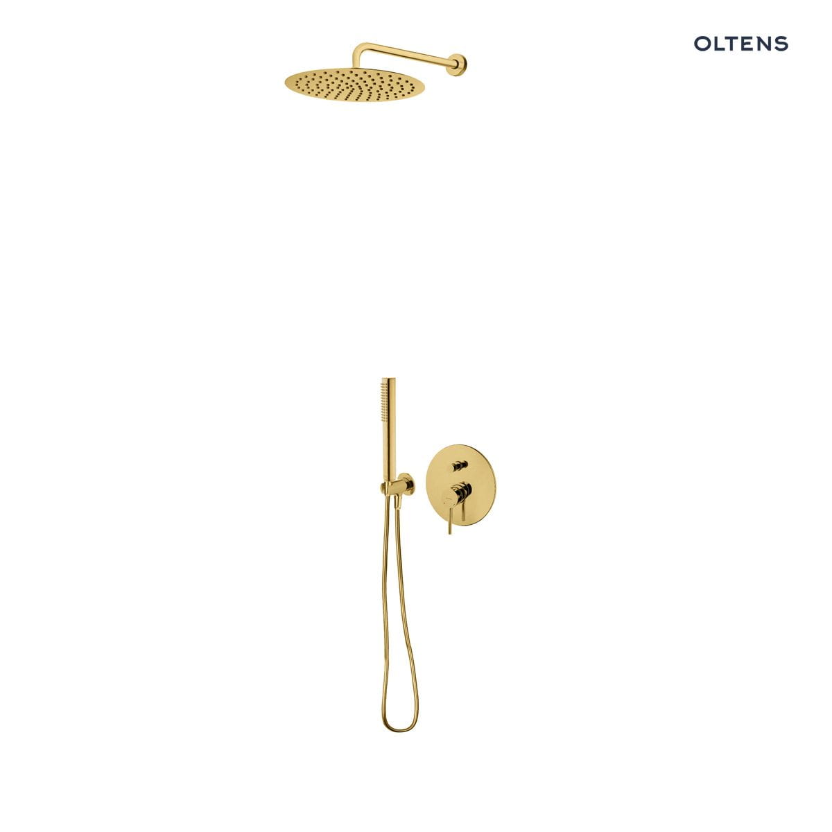 Zestaw Oltens Molle bateria podtynkowa z deszczownicą 30 cm Vindel i kompletem prysznicowym złoto szczotkowane 36600810