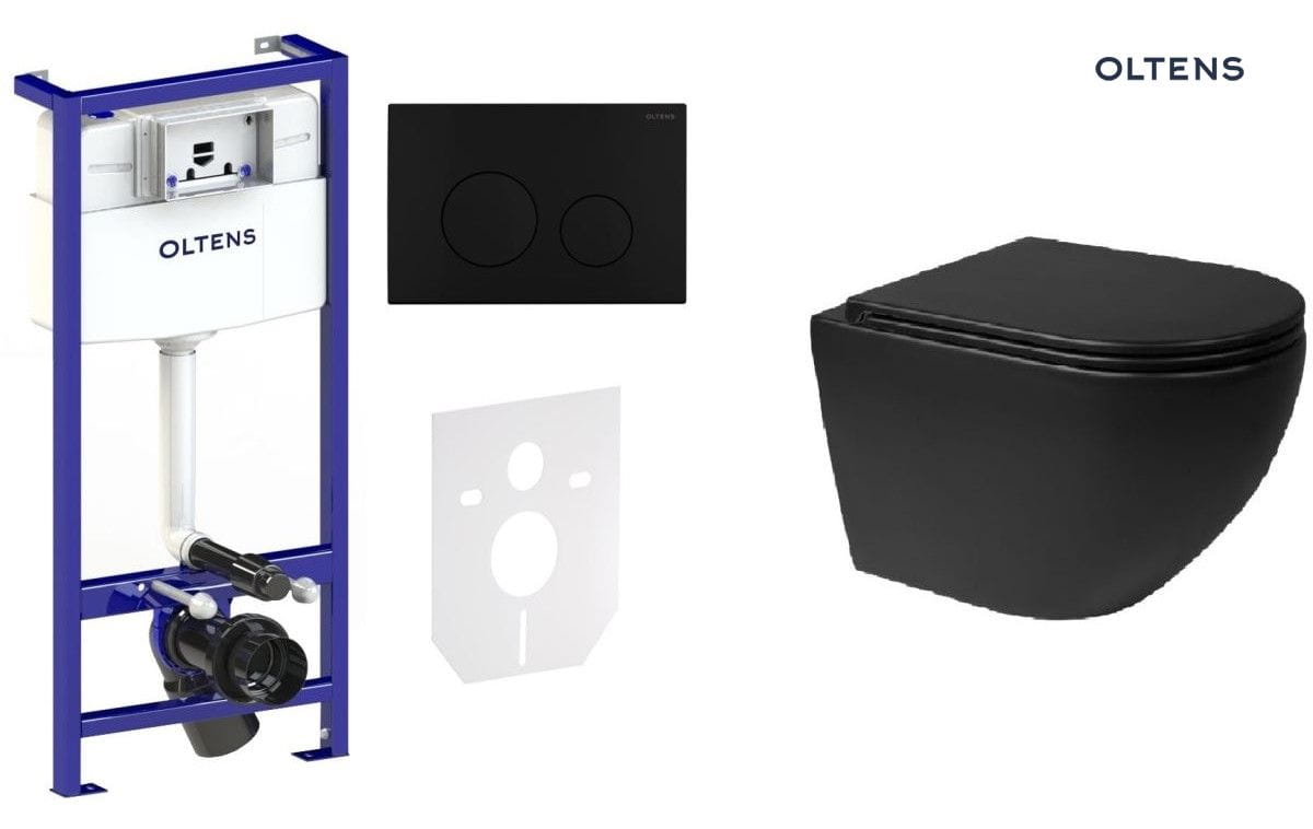 Zestaw Oltens Triberg Hamnes Lule 7w1 stelaż podtynkowy miska z deską 42514300 i przycisk spłukujący czarny mat 58303300